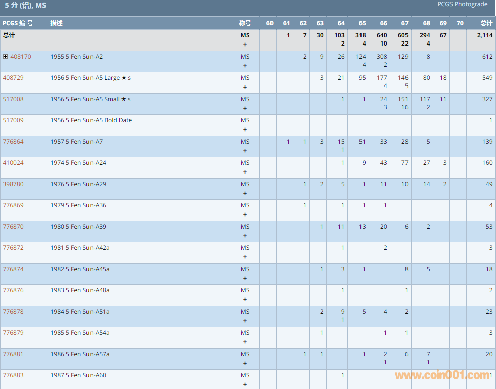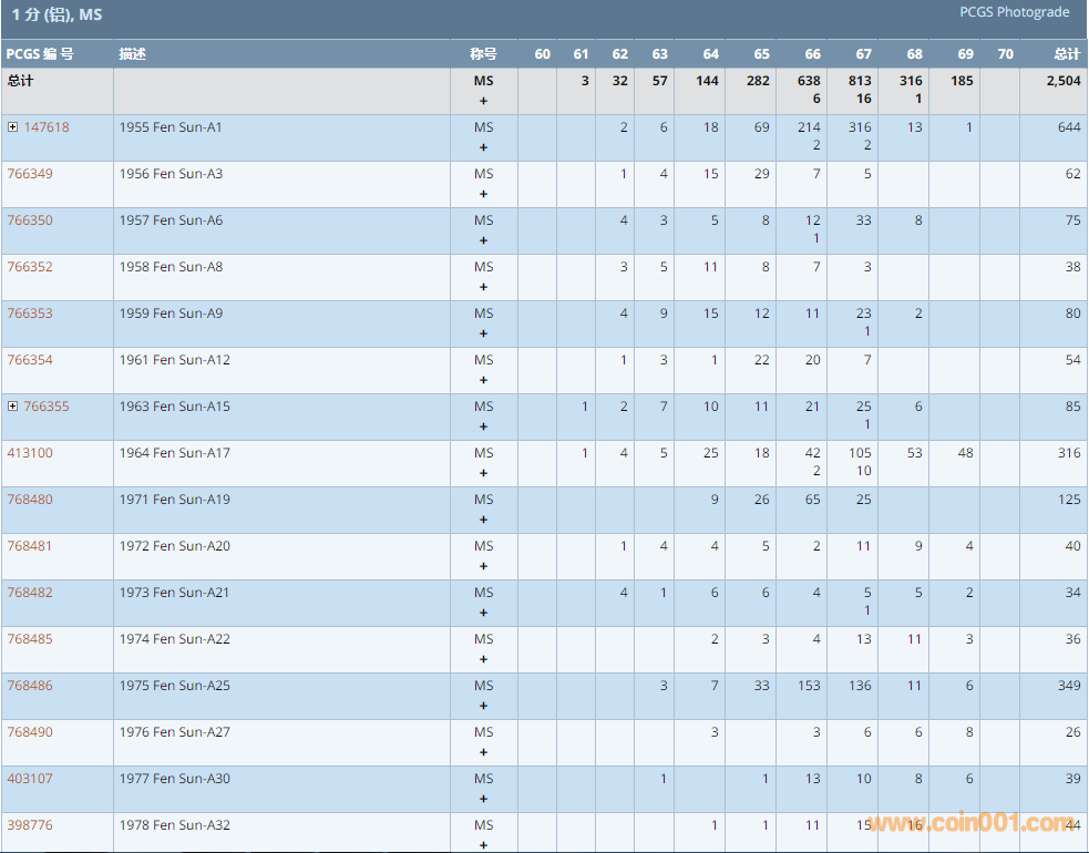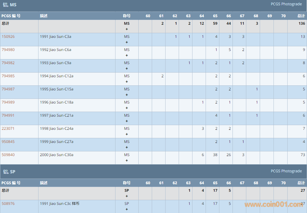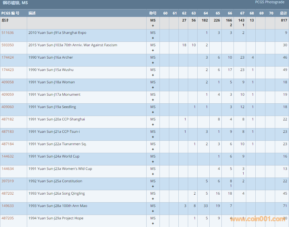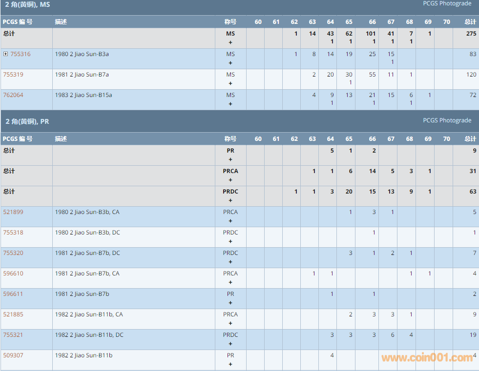 PCGS硬幣評(píng)級(jí)數(shù)量報(bào)告 ..