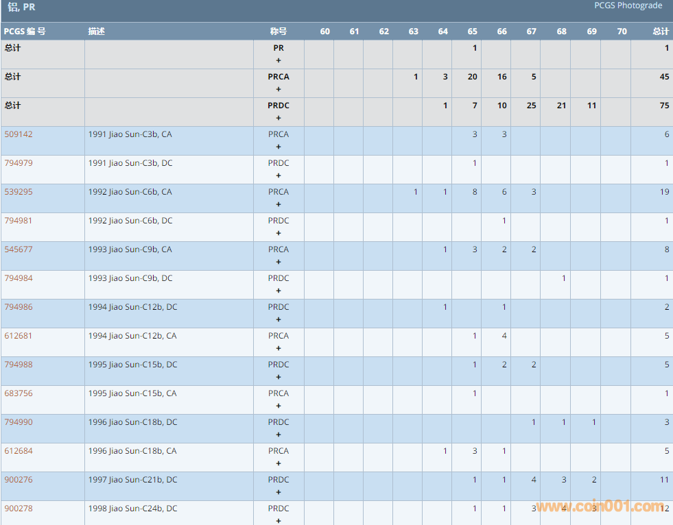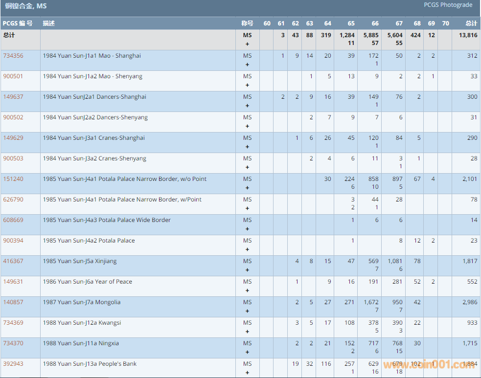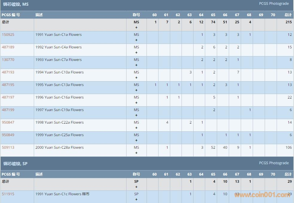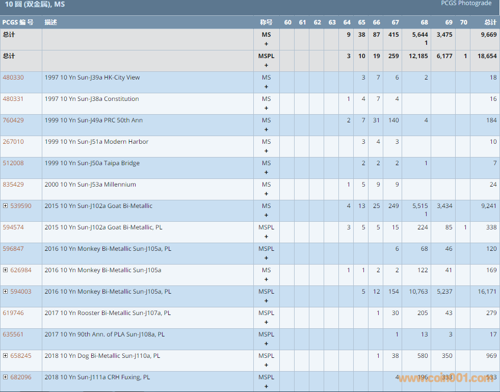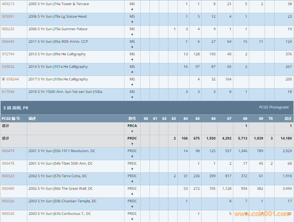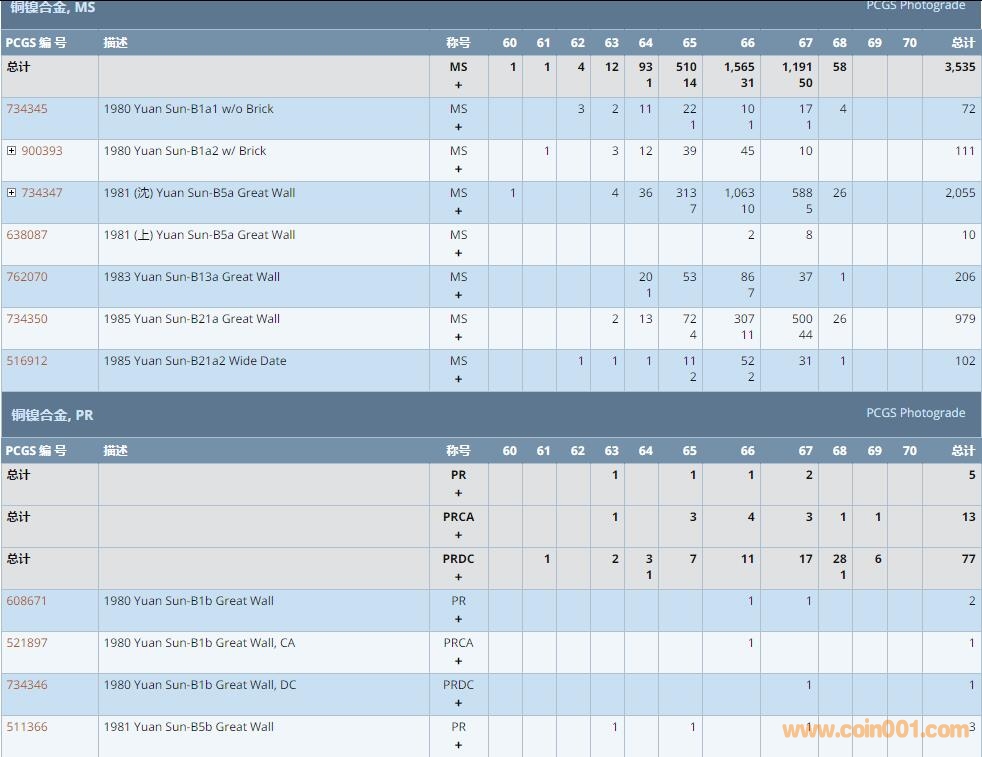 PCGS硬幣評(píng)級(jí)數(shù)量報(bào)告 ..
