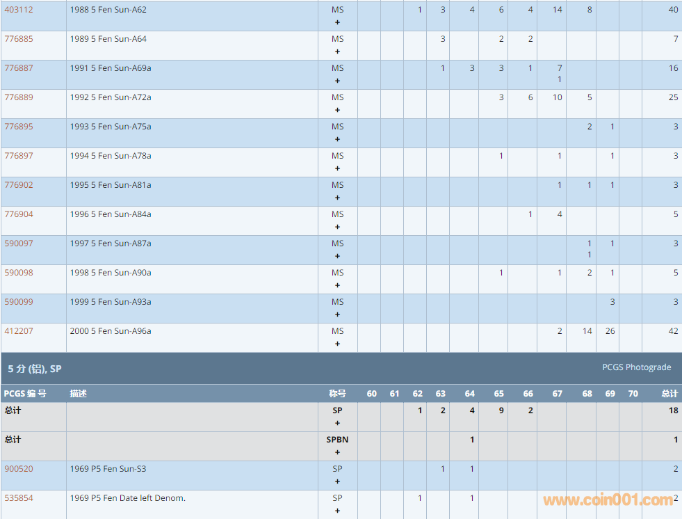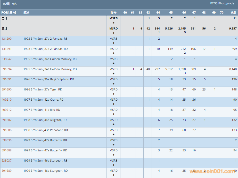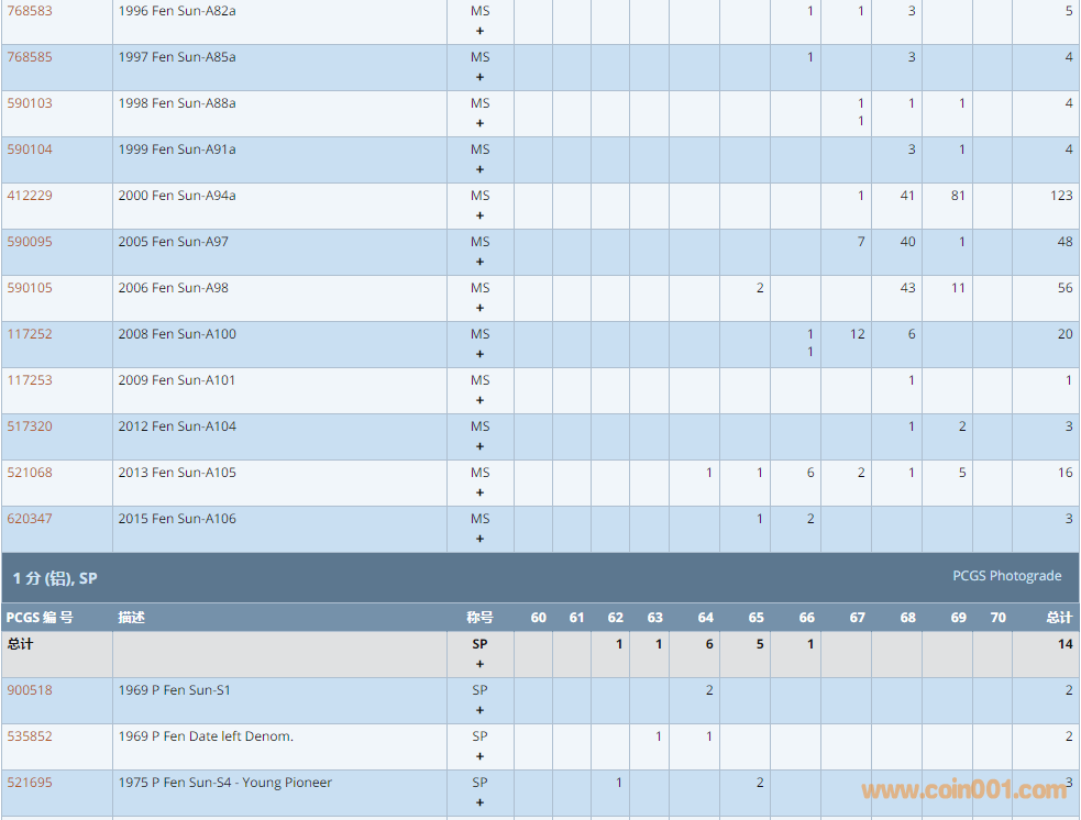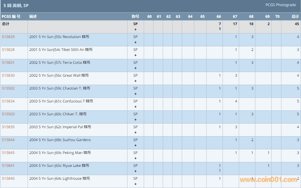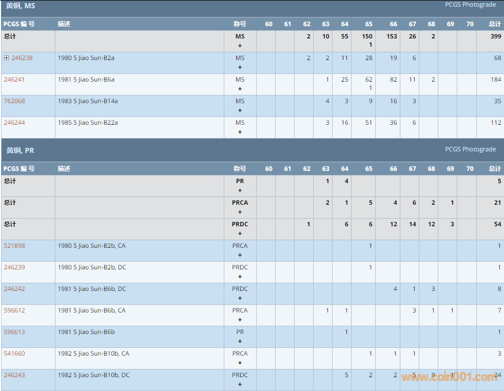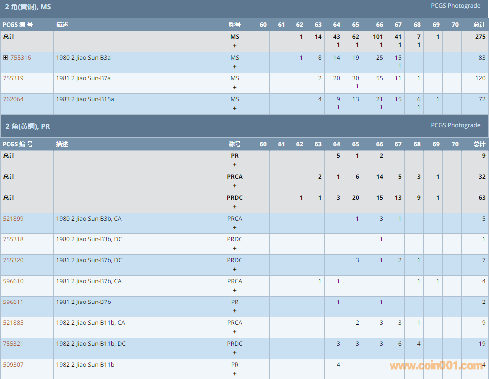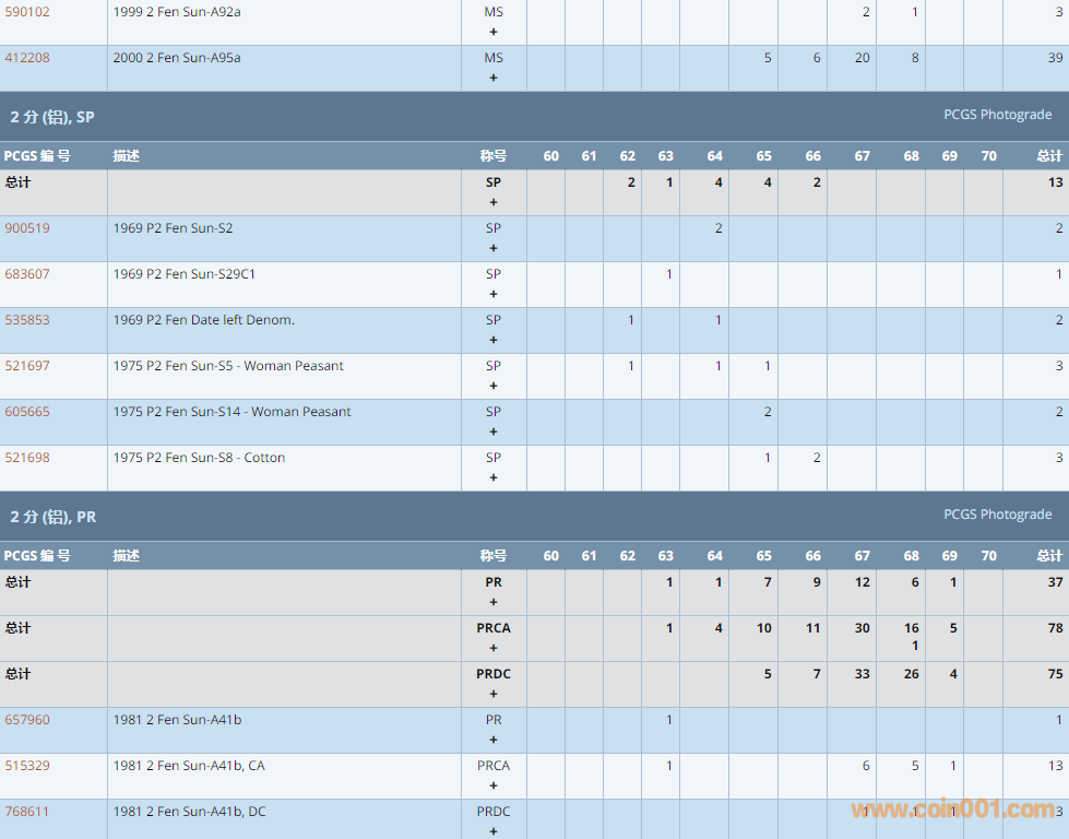 PCGS硬幣評(píng)級(jí)數(shù)量報(bào)告 ..