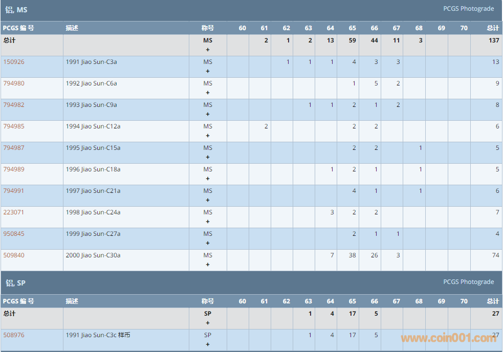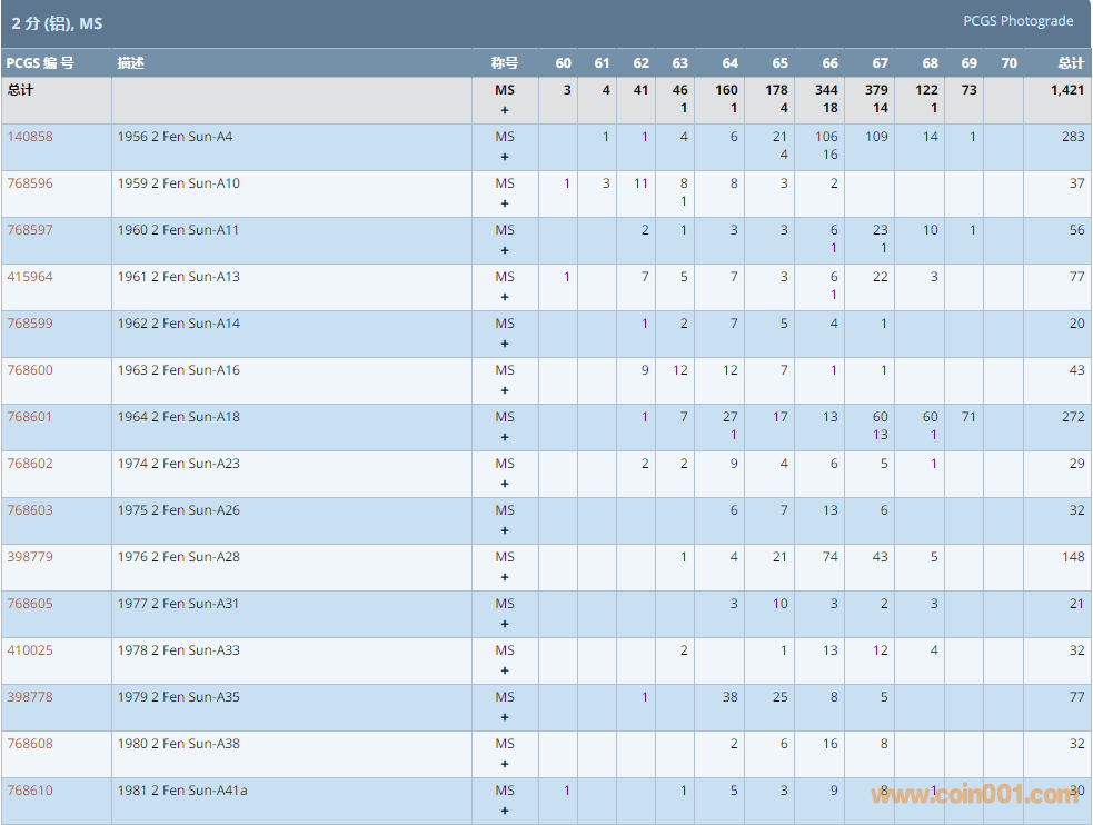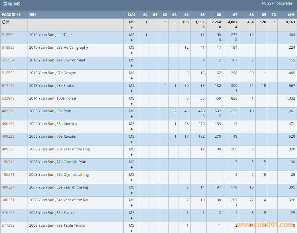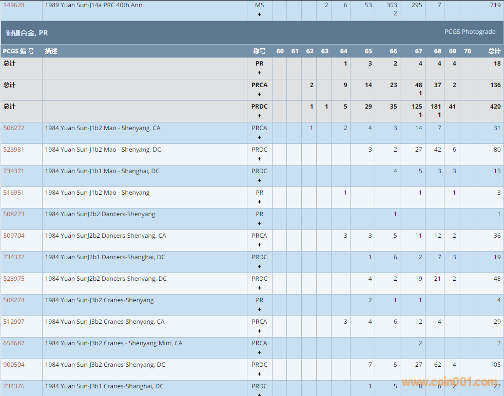 PCGS硬幣評(píng)級(jí)數(shù)量報(bào)告 ..
