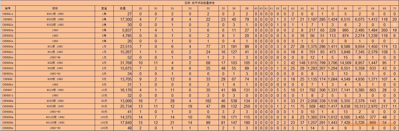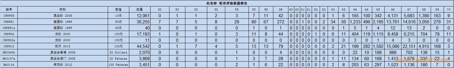 PMG紙幣評(píng)級(jí)數(shù)量報(bào)告