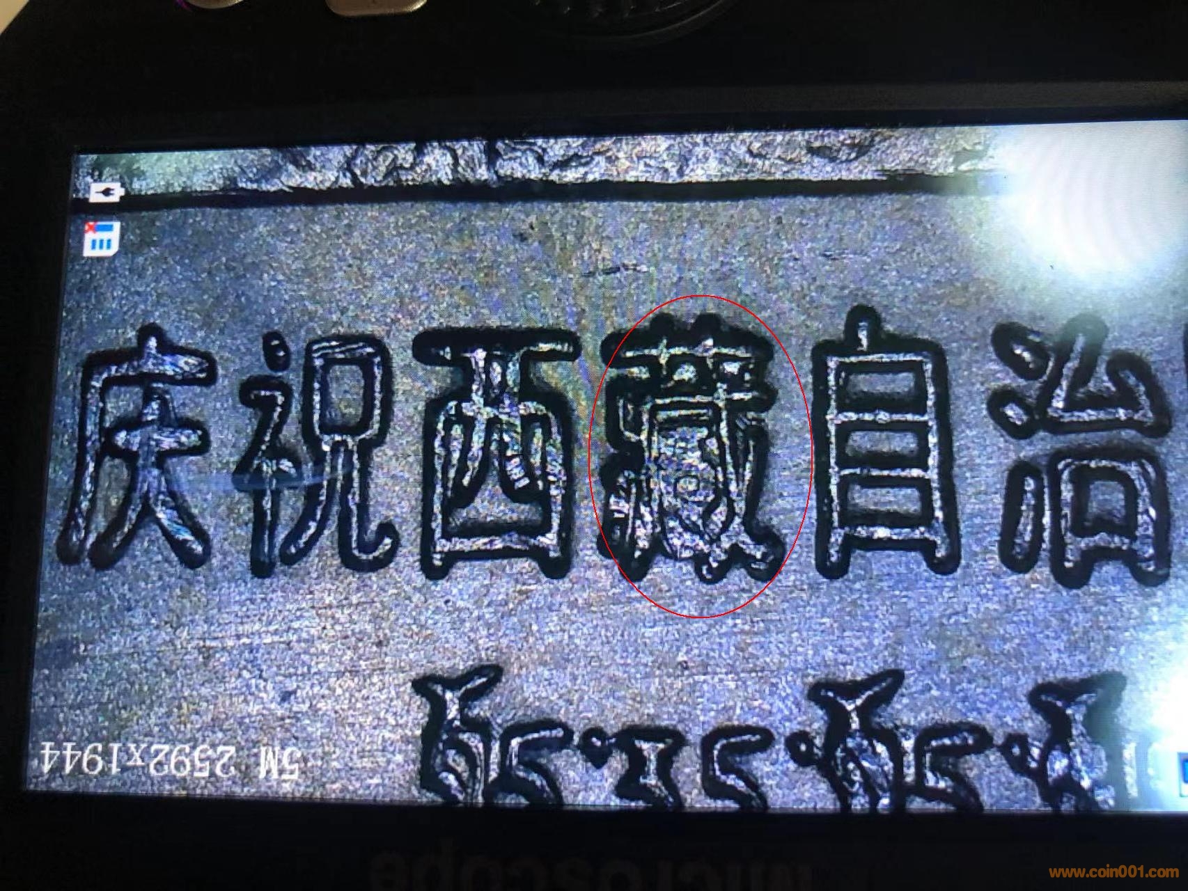 前幾天從網(wǎng)上買了個(gè)電子放大鏡,這次清晰可見,老西藏遠(yuǎn)山版的實(shí)心“藏”中臣的情況,從圖看原為實(shí)心,后期經(jīng)過(guò)工人進(jìn)行修改,并扎眼以代表“臣”中的口,若是弱打周圍部分也應(yīng)出現(xiàn)磨損,不單單此處這么嚴(yán)重,而且造幣廠工人早就發(fā)現(xiàn)了,才能出現(xiàn)人為修補(bǔ)(鉆孔問(wèn)題),可見此幣從生產(chǎn)初期質(zhì)檢的嚴(yán)格性,大家看看你們手中的老西藏遠(yuǎn)山有沒(méi)有未修改的。(補(bǔ)充幾張照片)還請(qǐng)大家各說(shuō)建議,開闊老西藏趣味幣的開發(fā)