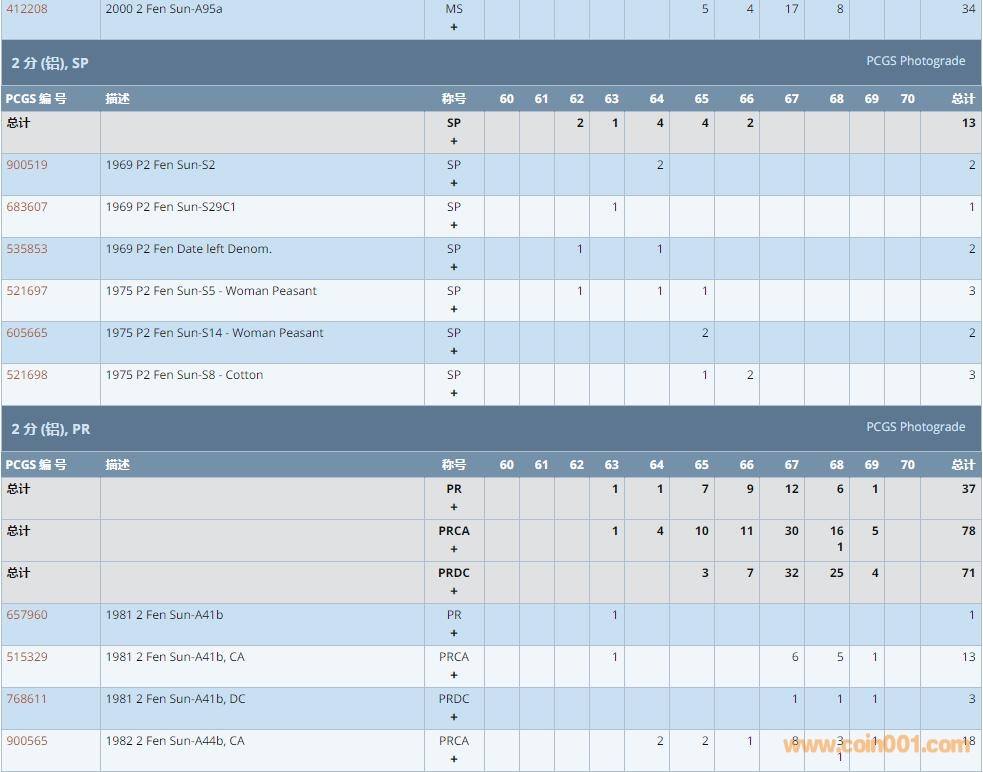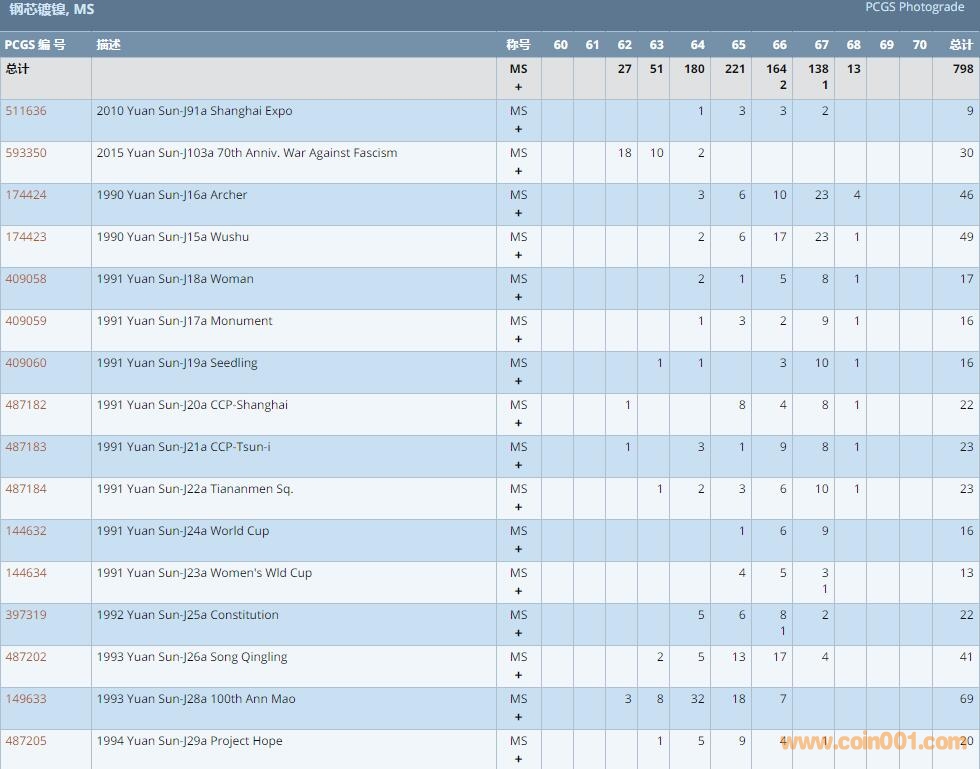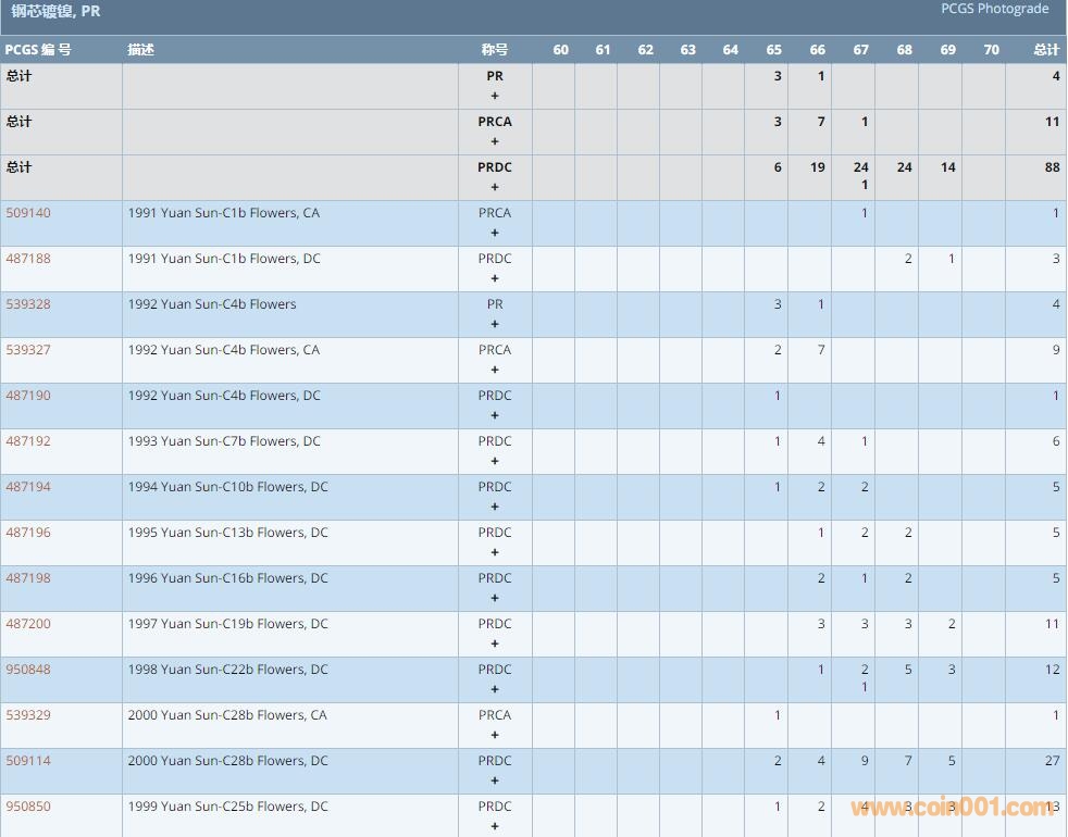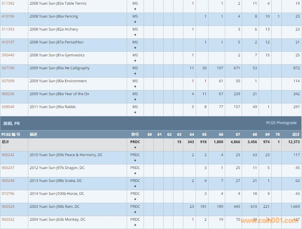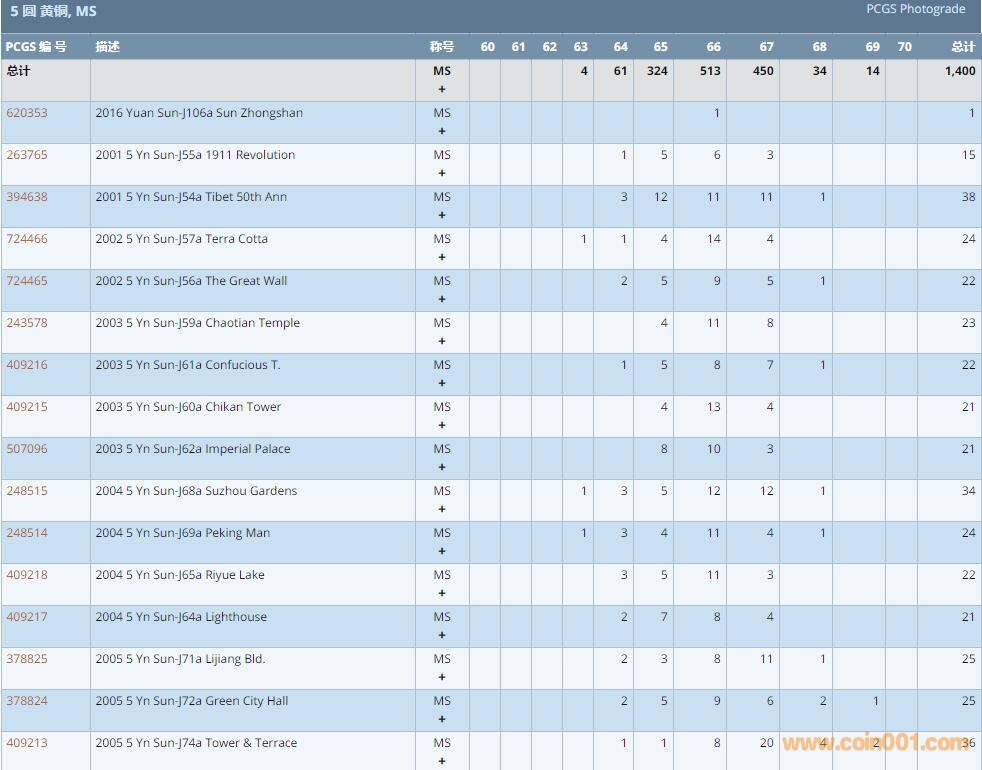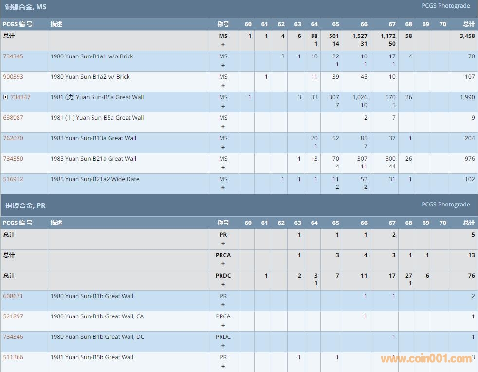 PCGS硬幣評級數(shù)量報告 ..