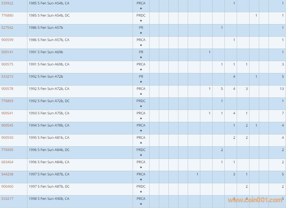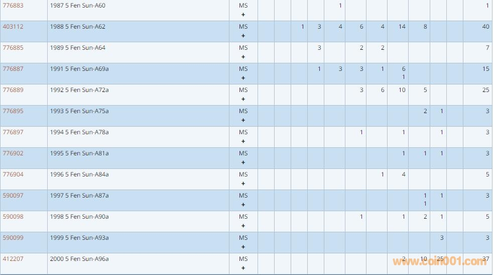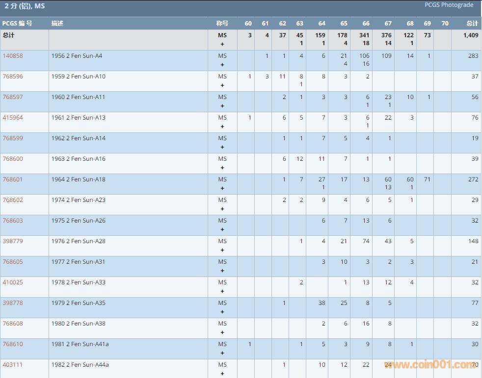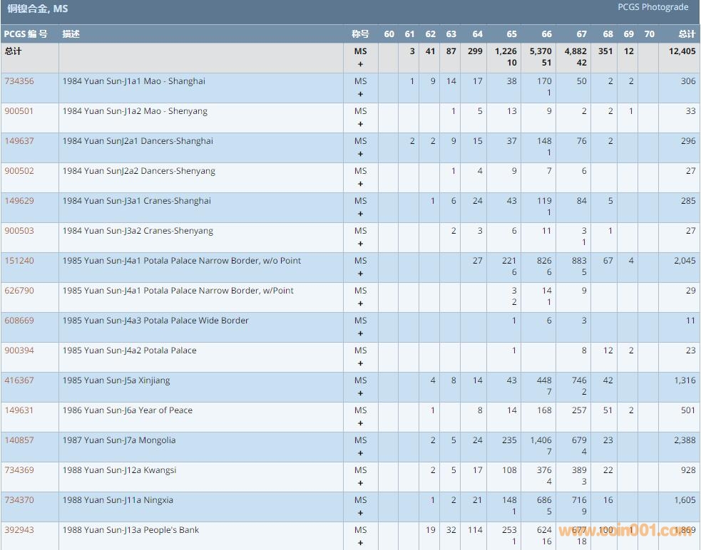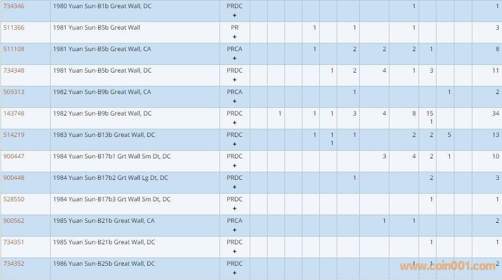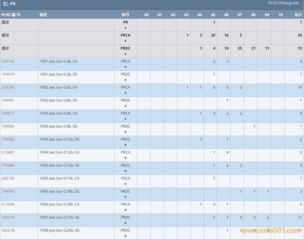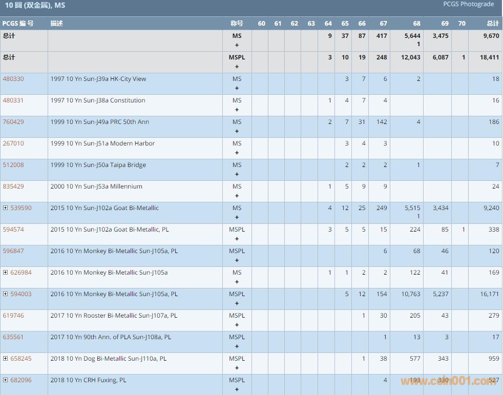 PCGS硬幣評級數(shù)量報告 ..