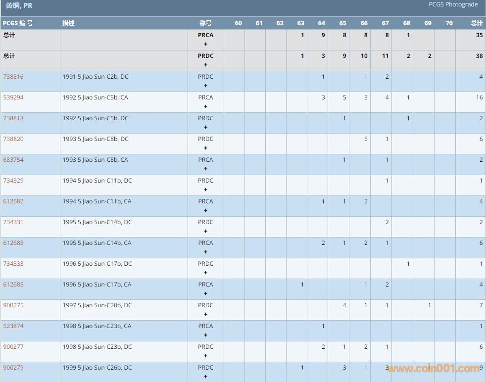 PCGS硬幣評(píng)級(jí)數(shù)量報(bào)告 ..