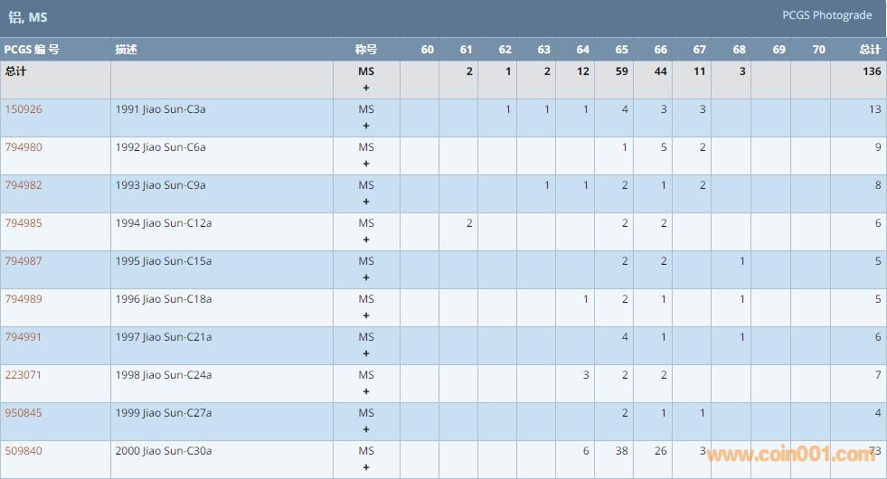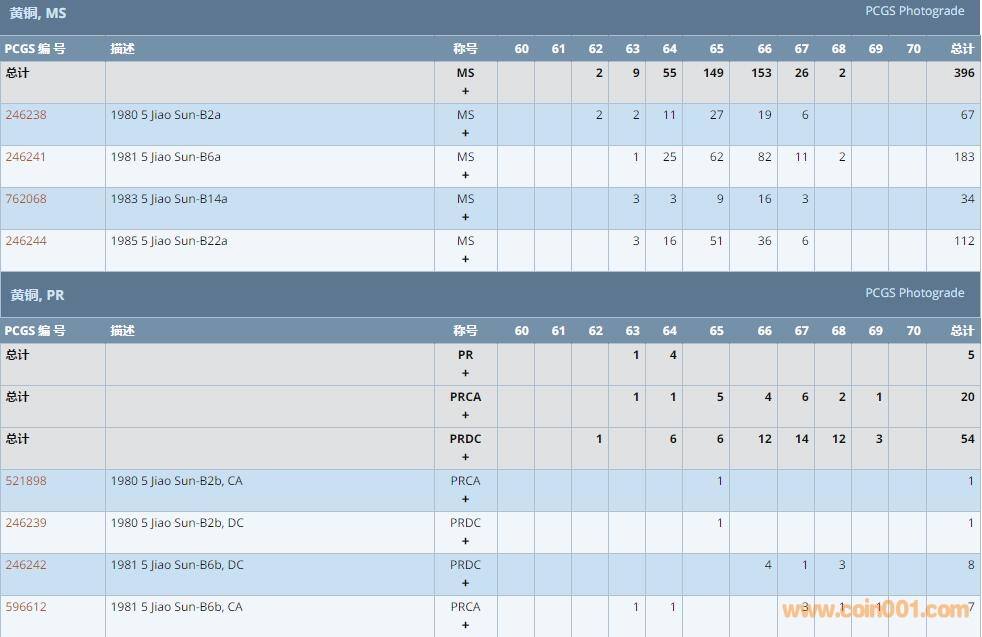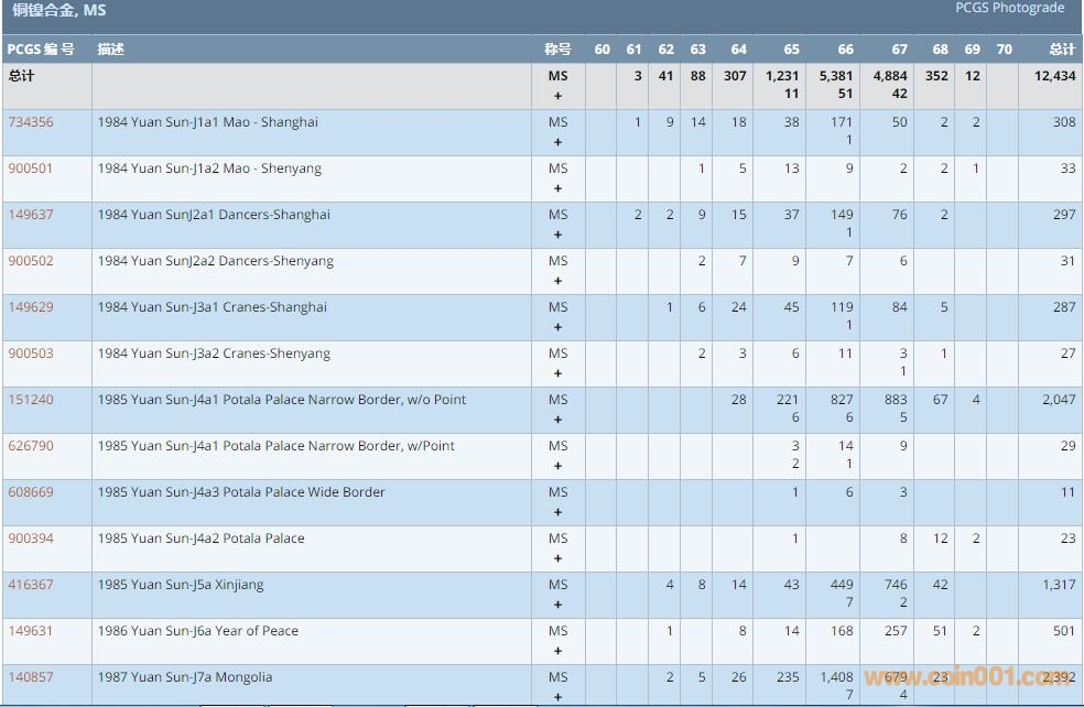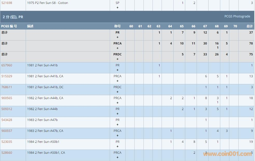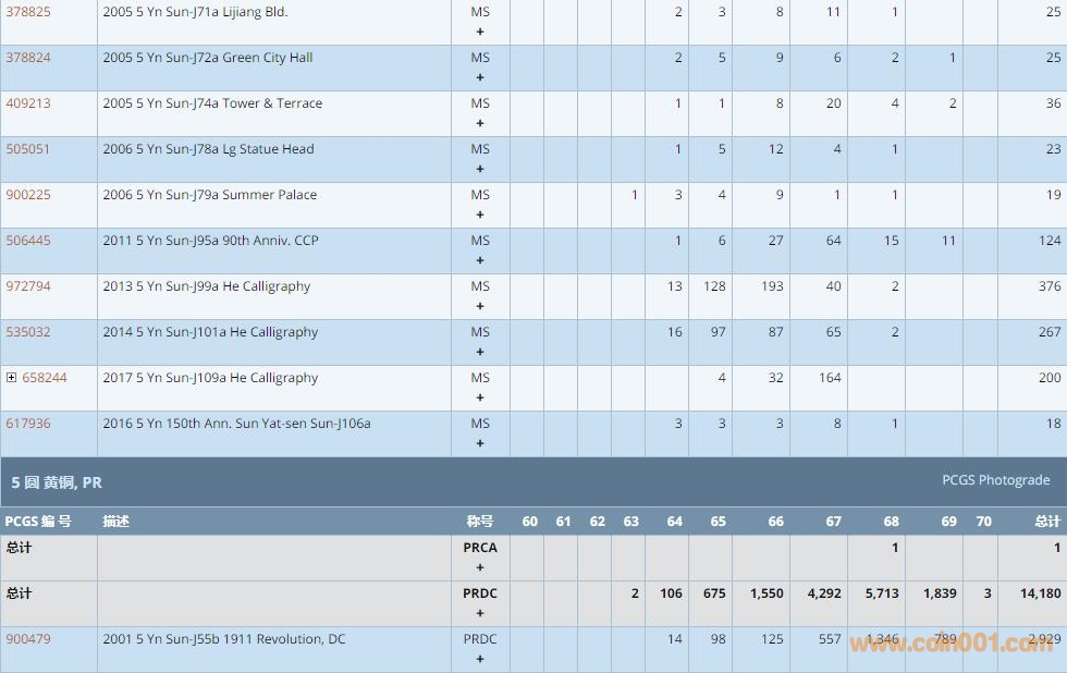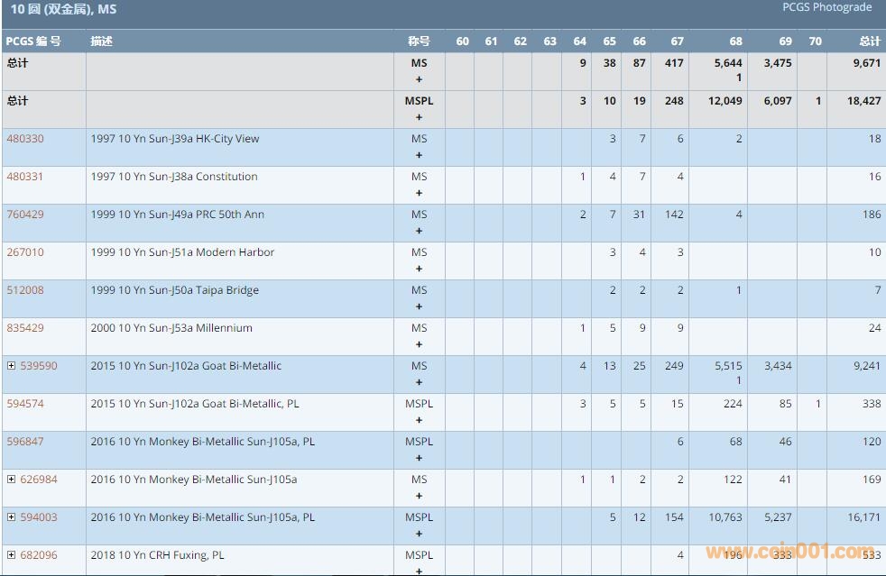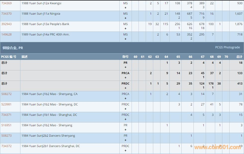 PCGS硬幣評(píng)級(jí)數(shù)量報(bào)告 ..