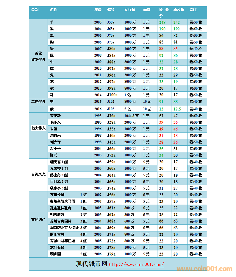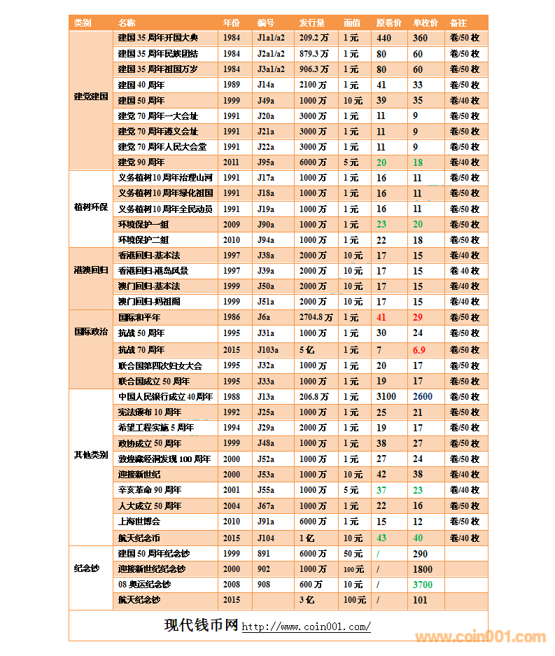 2016.9.15流通紀(jì)念幣報(bào)價(jià)