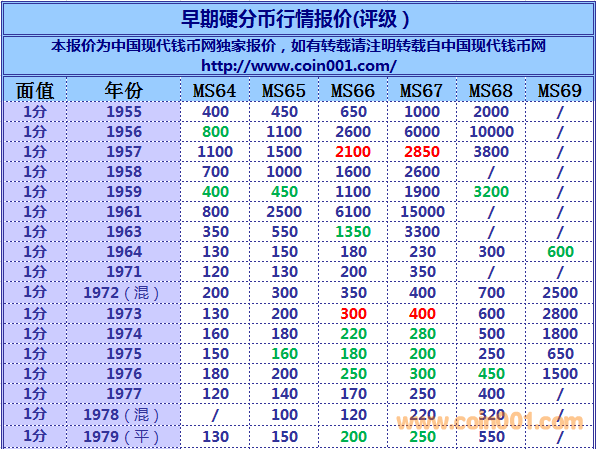 2016,8,1早期硬分幣報(bào)價(jià) ..