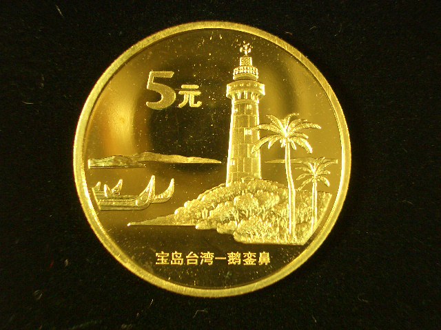????????2003年和2004年,中國人民銀行分別發(fā)行了寶島臺灣系列精制幣,主題圖案分別為“朝天宮”、“赤嵌樓”、“鵝鑾鼻”、“日月潭”。