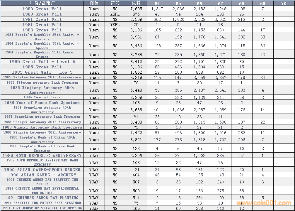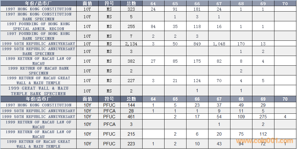 NGC硬幣評級數(shù)量報告 ..