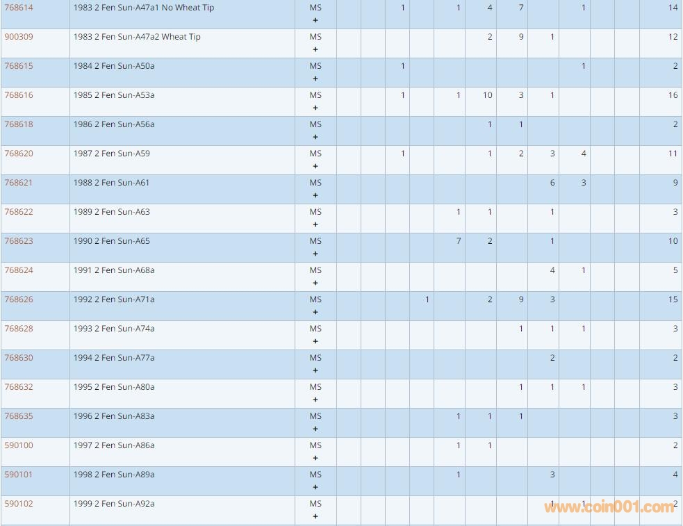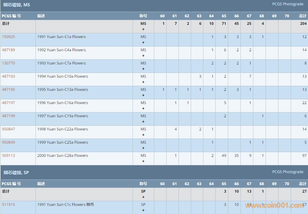 PCGS硬幣評(píng)級(jí)數(shù)量報(bào)告 ..