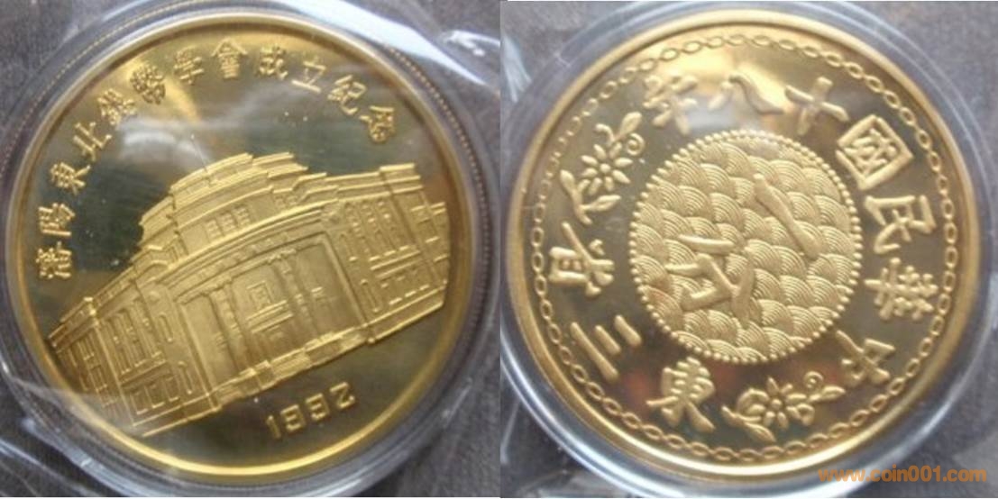 1992年制造,黃銅精制,沈幣發(fā)行。正面為學(xué)會(huì)大樓,反面為一分機(jī)制幣。