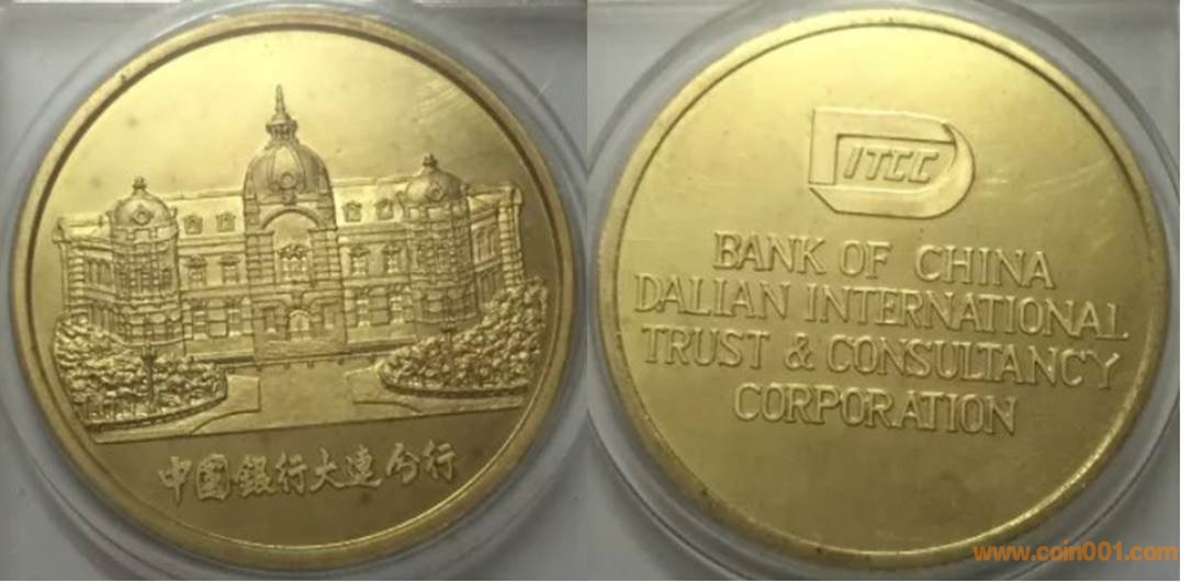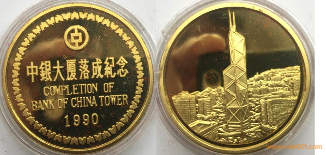 1990年制造,黃銅精制。正面為主題文字,反面為中銀大廈。