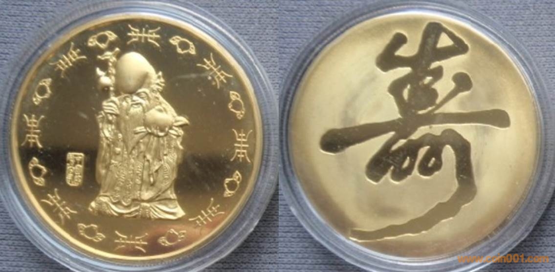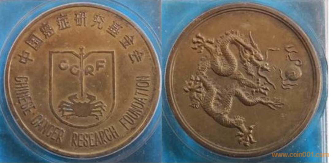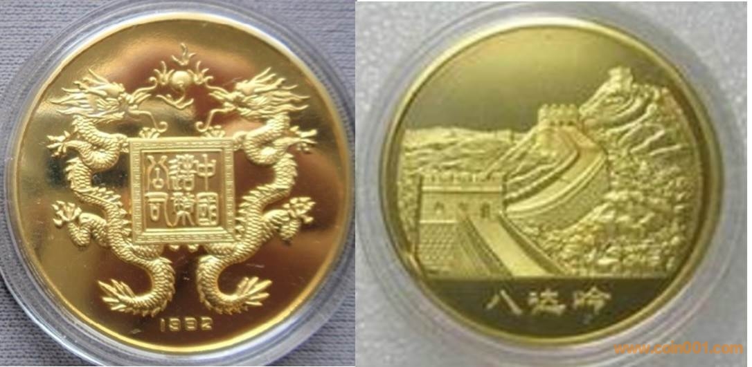 1989年制造,黃銅精制。正面為主題文字,反面為長城。