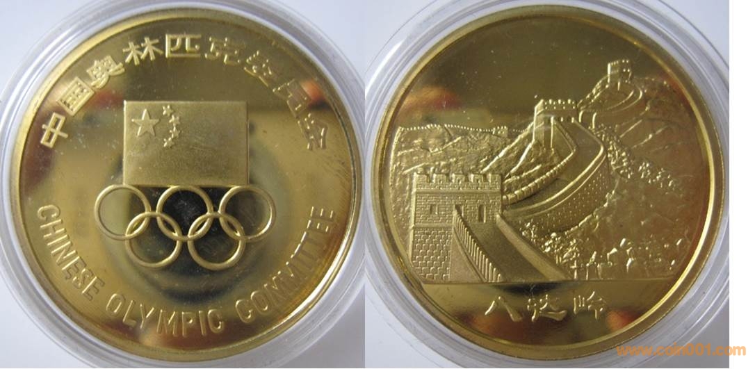80年代制造,黃銅精制。正面為五環(huán),反面為長城。