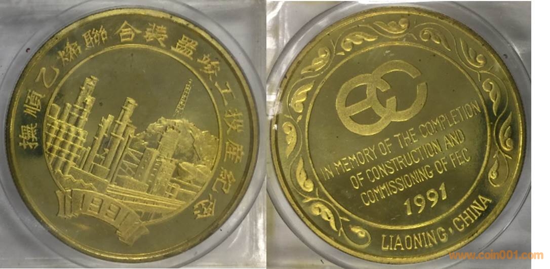 1991年制造,黃銅精制。正面為廠房,反面為英文文字。