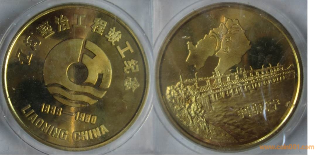 1990年制造,黃銅精制。正面為主題文字,反面為遼河。