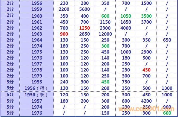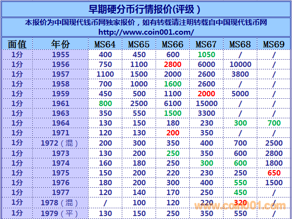 2016,6,1早期硬分幣報價 ..