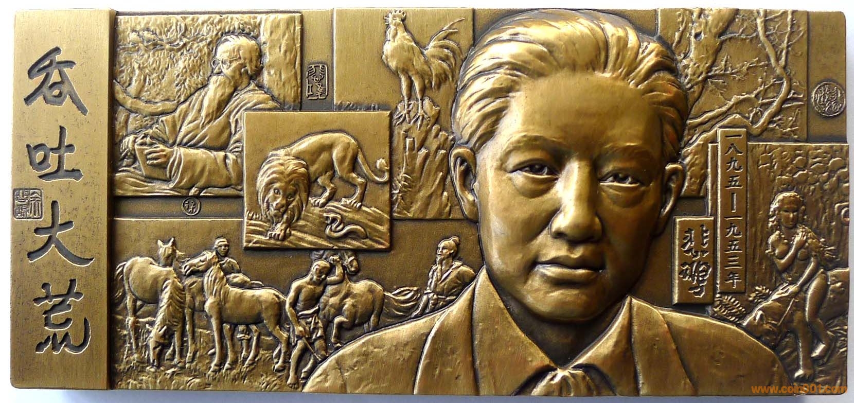 今年是藝術(shù)大師徐悲鴻(1895~1953)先生逝世60周年。日前,由徐悲鴻夫人廖靜文女士題詞、上海市徐悲鴻藝術(shù)研究協(xié)會(huì)策劃、陳堅(jiān)老師設(shè)計(jì)的“徐悲鴻大師紀(jì)念大銅章”是一枚很具特色的紀(jì)念章。