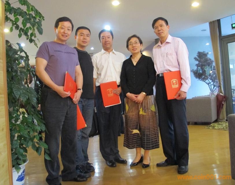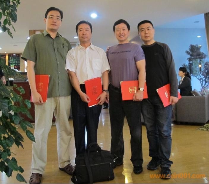 從左至右:卞一冰委員(中國收藏家協(xié)會(huì)錢幣收藏委員會(huì)副秘書長)、孫克勤委員、蔡小平委員、雷霆委員等在一起親切合影。