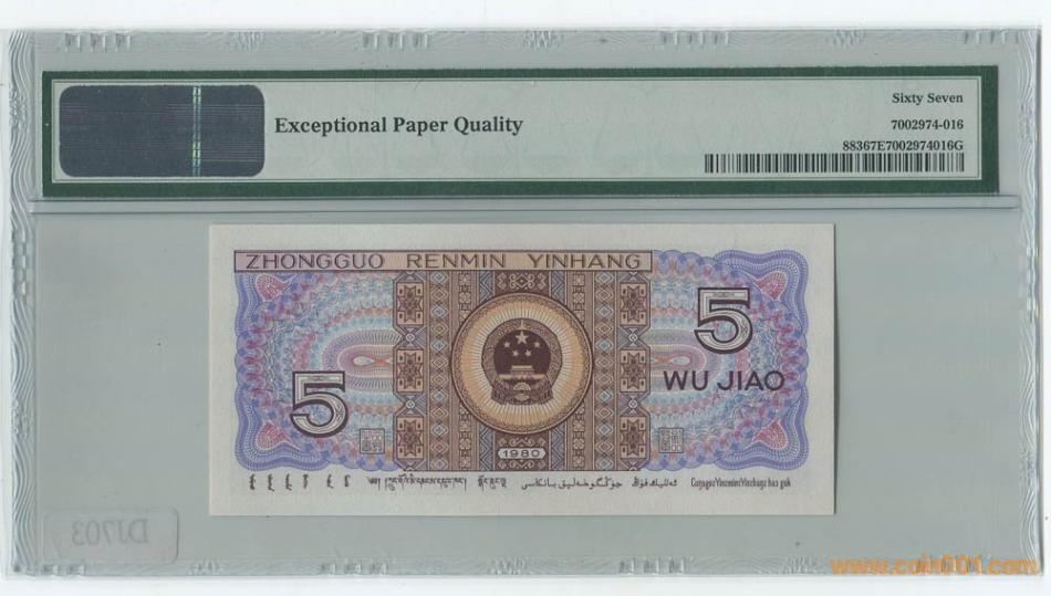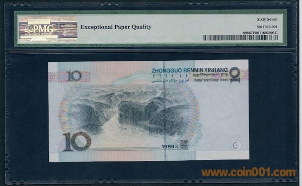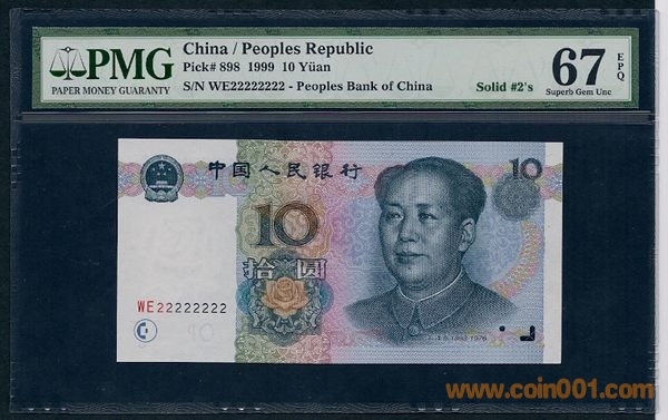 還是對(duì)臺(tái)鈔較不討喜,理由很簡(jiǎn)單,國(guó)際現(xiàn)實(shí)情勢(shì)使然(根本躍不上國(guó)際拍賣(mài)舞臺(tái)),這是臺(tái)鈔之宿命與最大的致命傷,所以,我選擇人民幣同號(hào)鈔,據(jù)小弟依PMG評(píng)級(jí)規(guī)定及等第(67分以上才歸類(lèi)為Superb Gem Unc等級(jí))與所有網(wǎng)站出現(xiàn)同號(hào)鈔頻率等,概略以數(shù)學(xué)或然率演算,一張同號(hào)鈔送往PMG評(píng)級(jí)(在沒(méi)有人為因素影響下)出現(xiàn)67分Superb Gem Unc等級(jí)以上之或然率係數(shù)為0.25,且其地位具有不可取代之價(jià)值,可見(jiàn)67分以上之同號(hào)鈔應(yīng)屬稀有中之稀有動(dòng)物,因此,與臺(tái)鈔兩相比較,總結(jié);我寧可帶著地球儀上四個(gè)可愛(ài)的小孩衝鋒陷陣追求67分以上之人民幣同號(hào)鈔!!!以上是小弟個(gè)人見(jiàn)解,如有冒犯之處,希請(qǐng)見(jiàn)諒,謝謝!!!