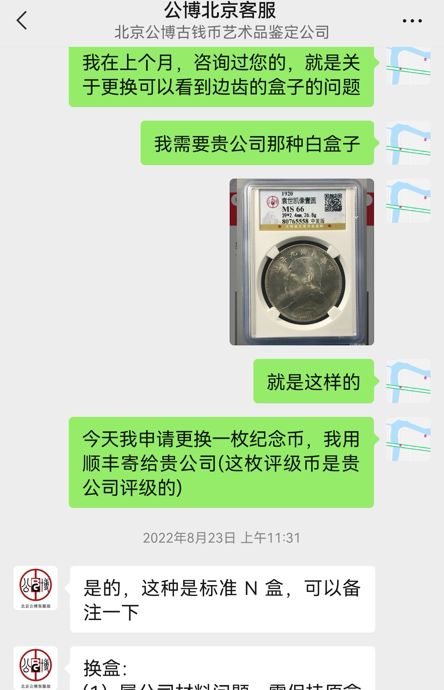 邊齒就被遮擋了,但一部分評(píng)級(jí)公司沒(méi)有這種透明底板,邊齒就能看到,但北京公博同時(shí)具有兩種盒子式樣讓送評(píng)人可選,如果選擇啫喱、N盒,公博就尊重送評(píng)人的選擇,如果不聲明選什么款式,就是默認(rèn)啫喱式,那就欣賞不到邊齒了。我之前為此曾與北京客服溝通過(guò)這個(gè)問(wèn)題,并特意更換過(guò)能看到邊齒白盒子,價(jià)格都一樣(請(qǐng)看微信截屏)。