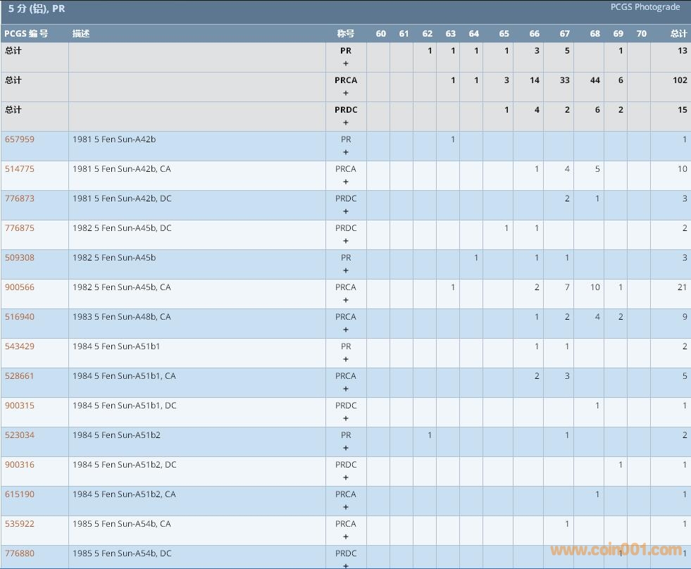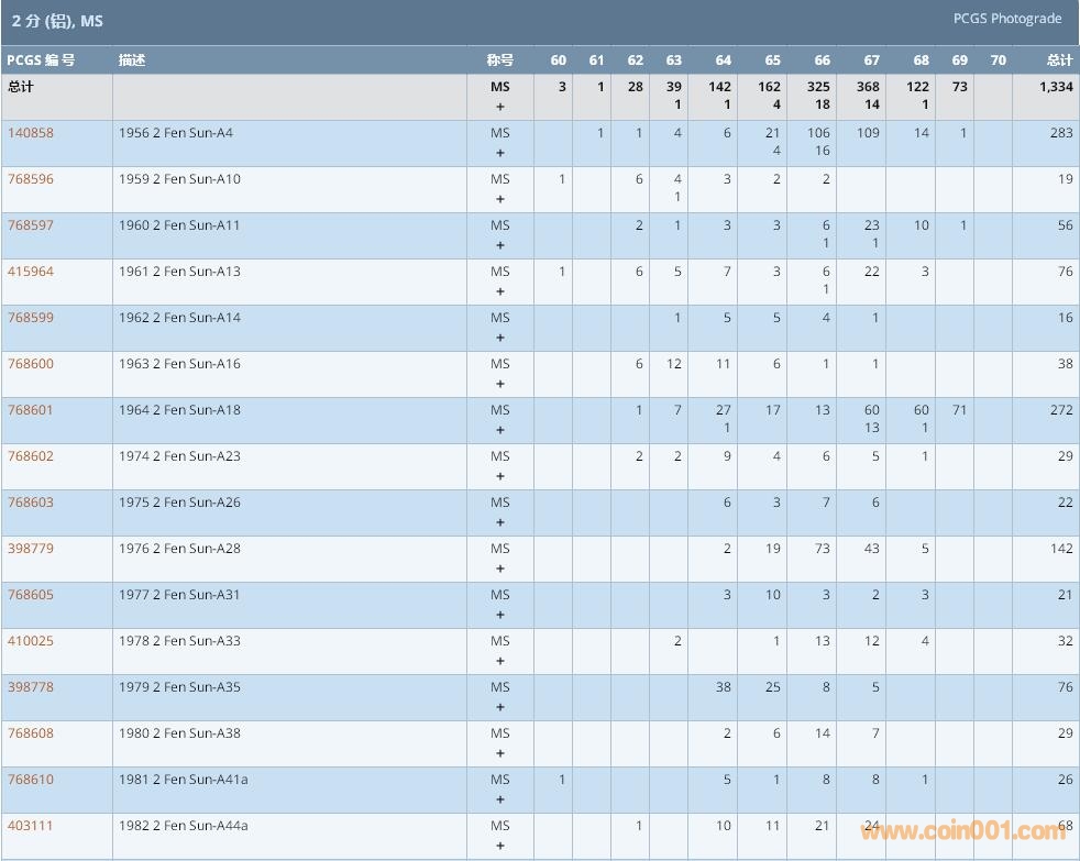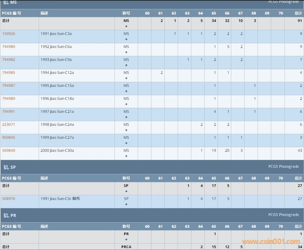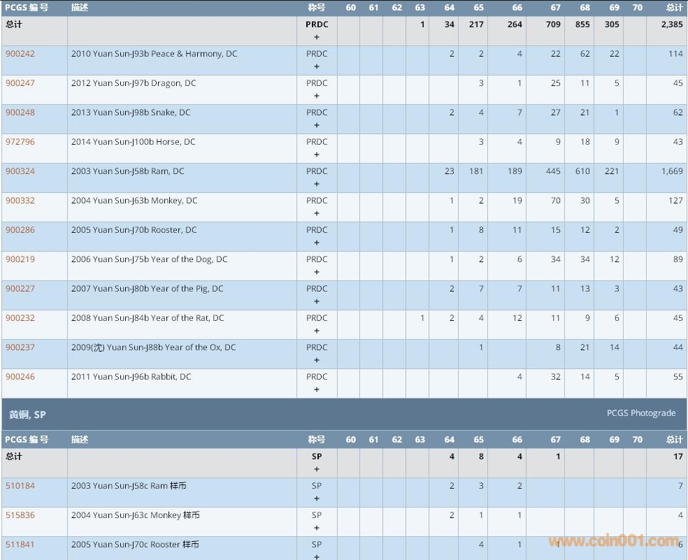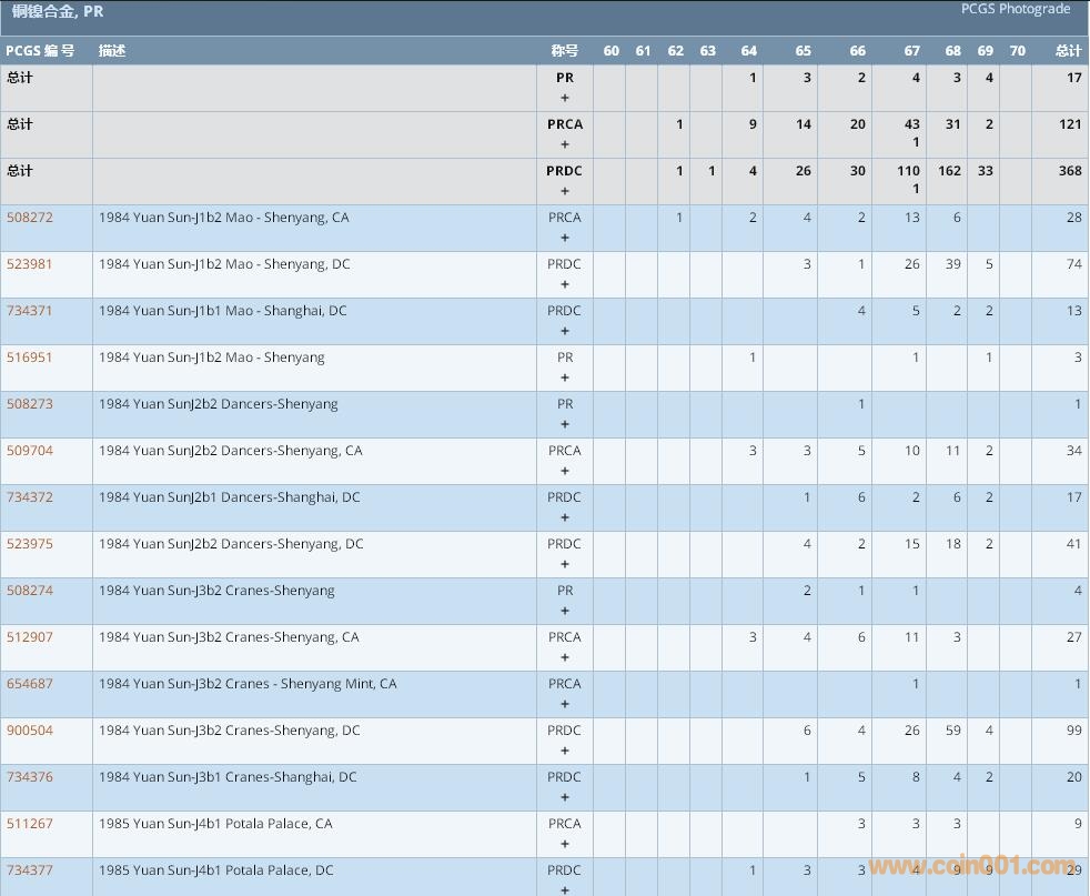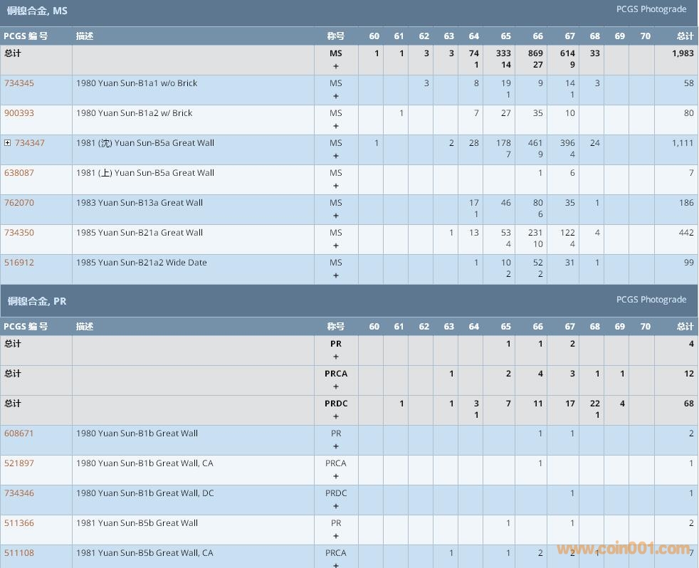 PCGS硬幣評級數(shù)量報告 ..