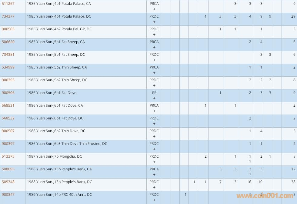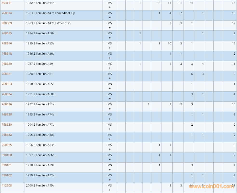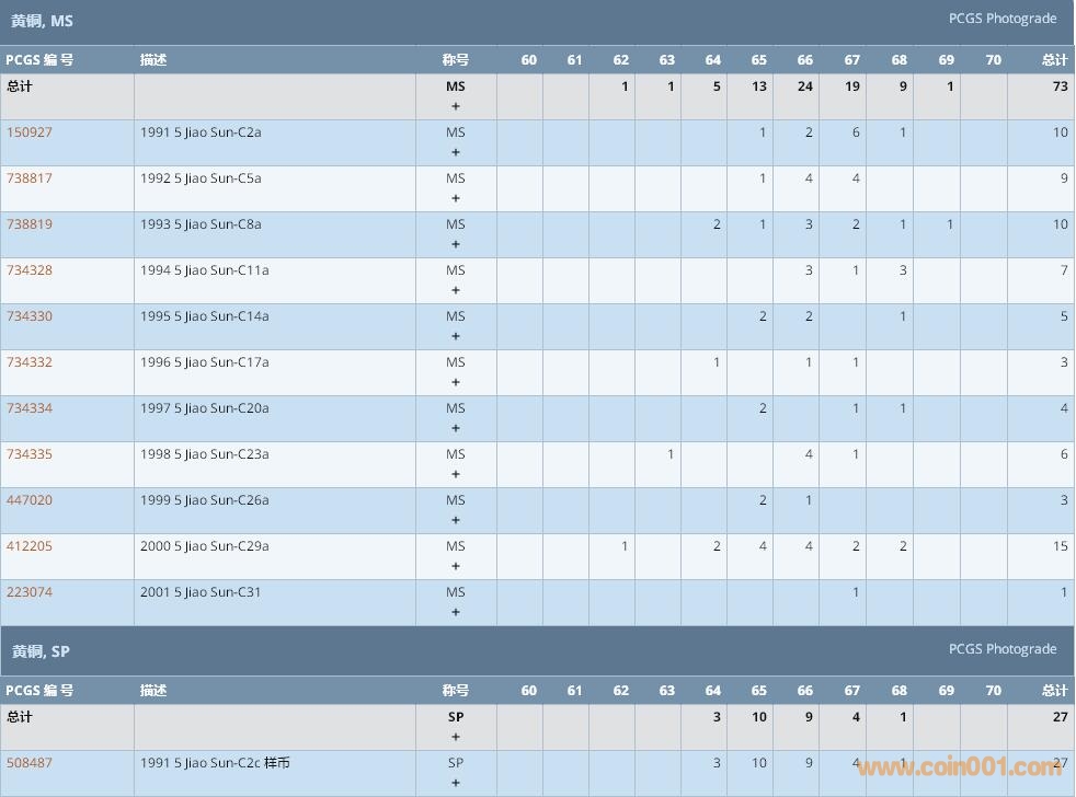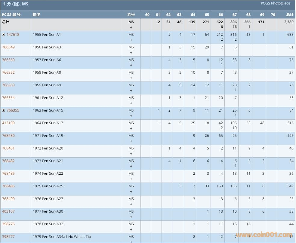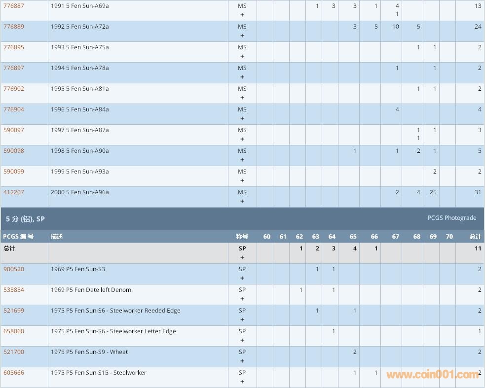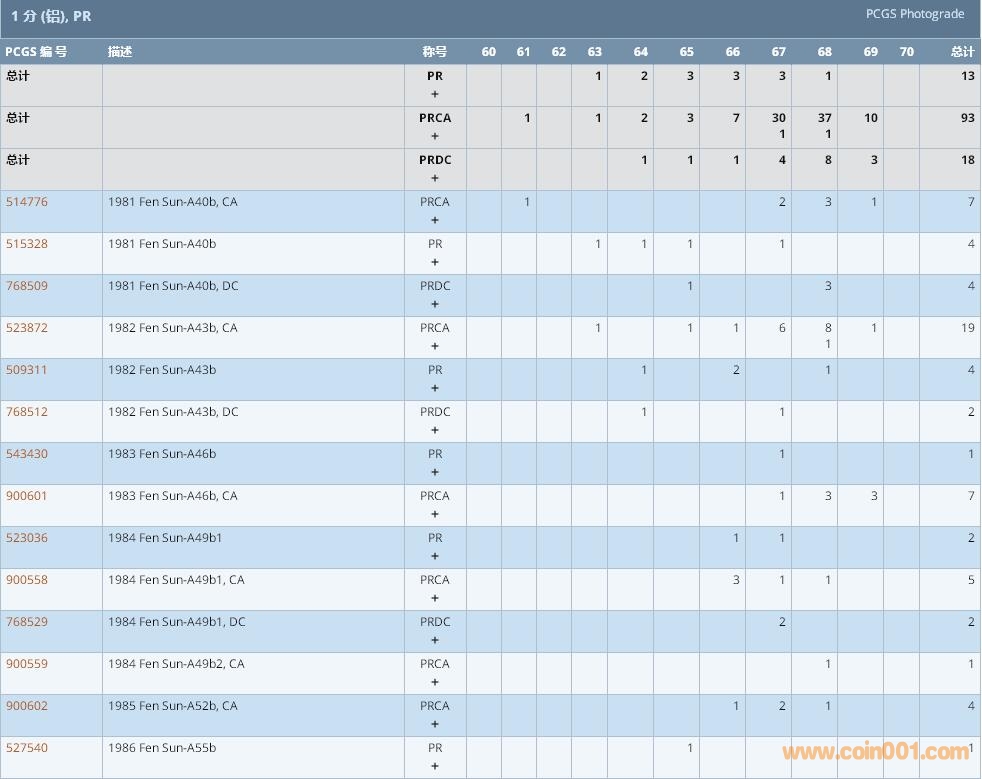 PCGS硬幣評級數(shù)量報告 ..