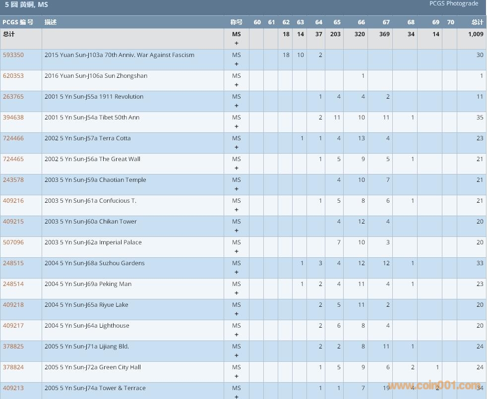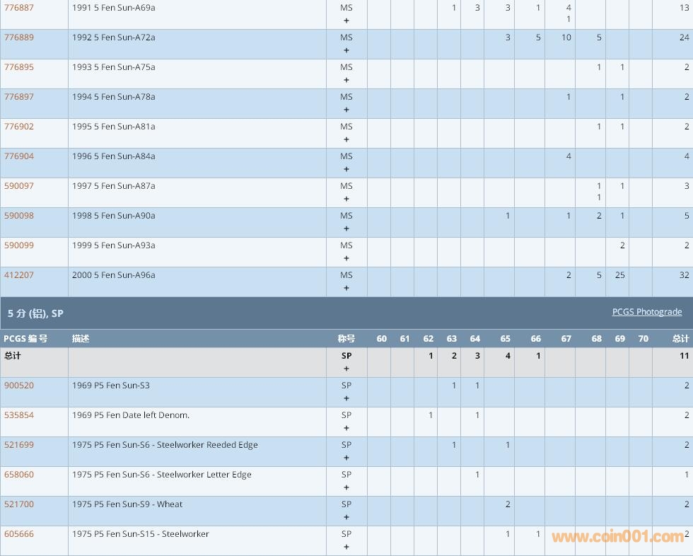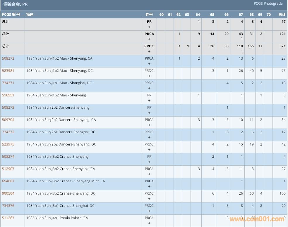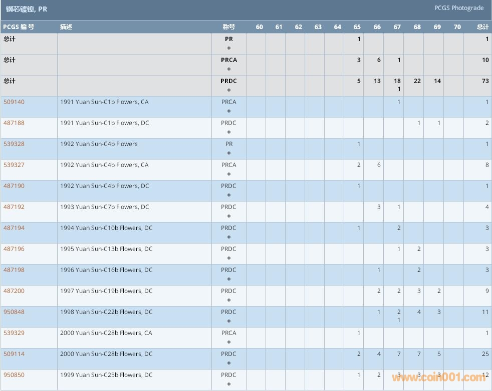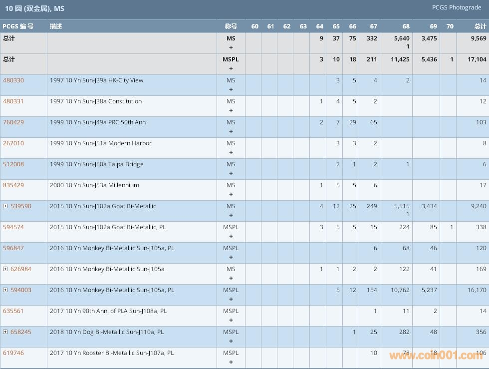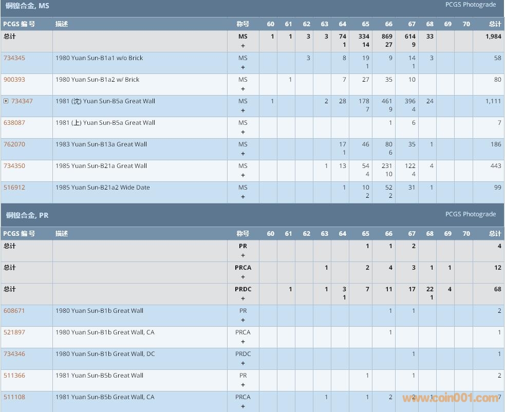 PCGS硬幣評(píng)級(jí)數(shù)量報(bào)告 ..