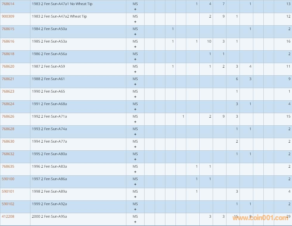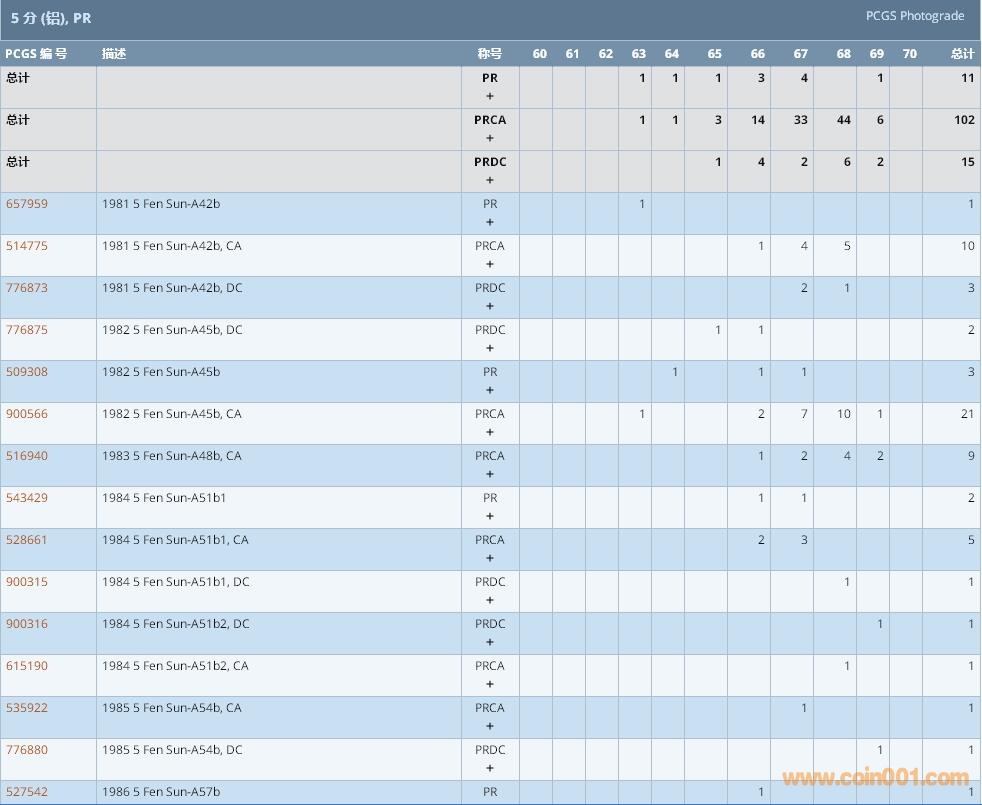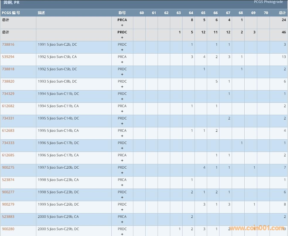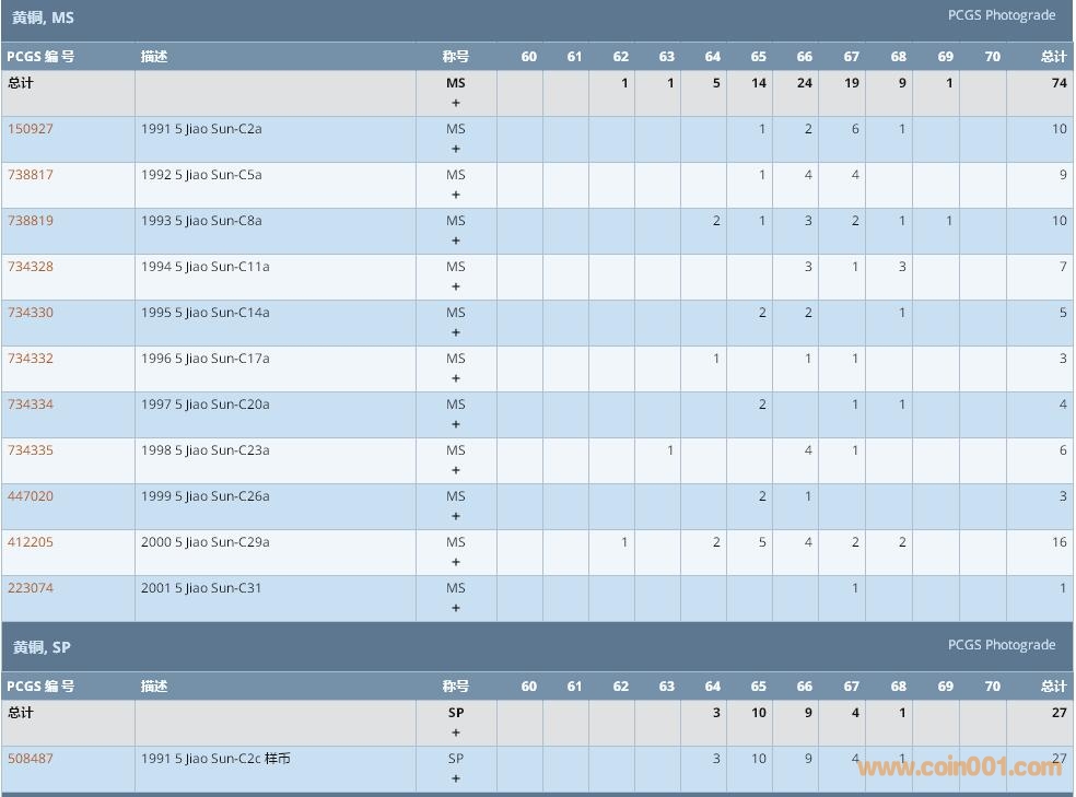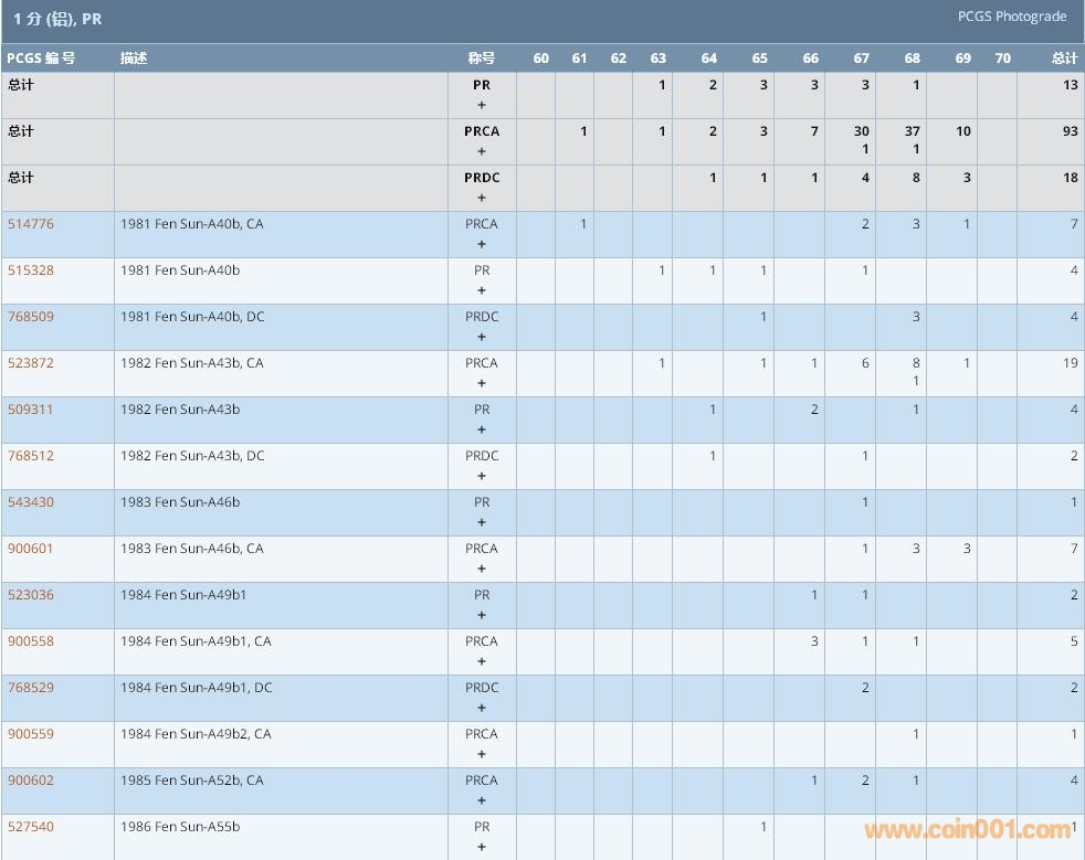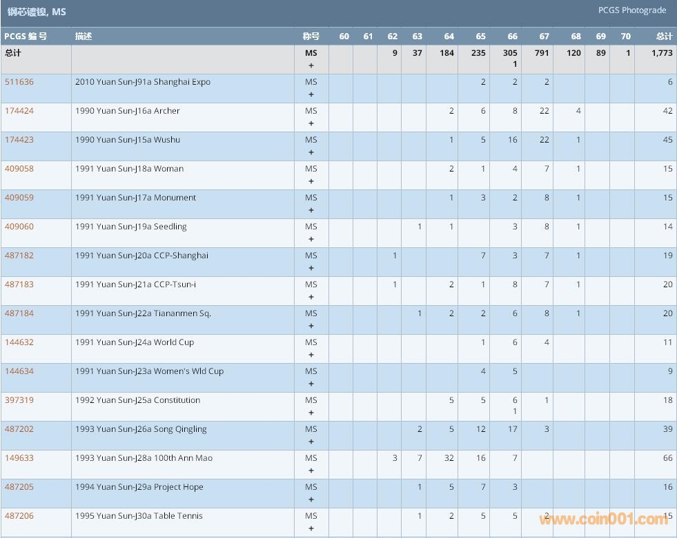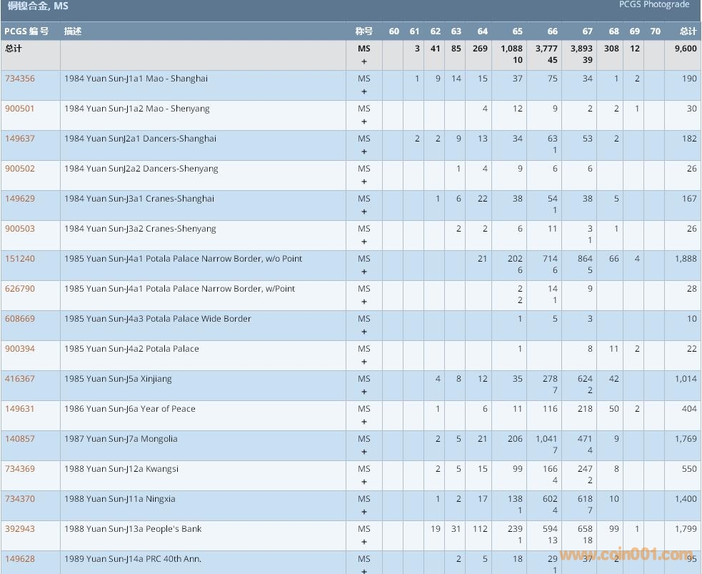 PCGS硬幣評(píng)級(jí)數(shù)量報(bào)告 ..