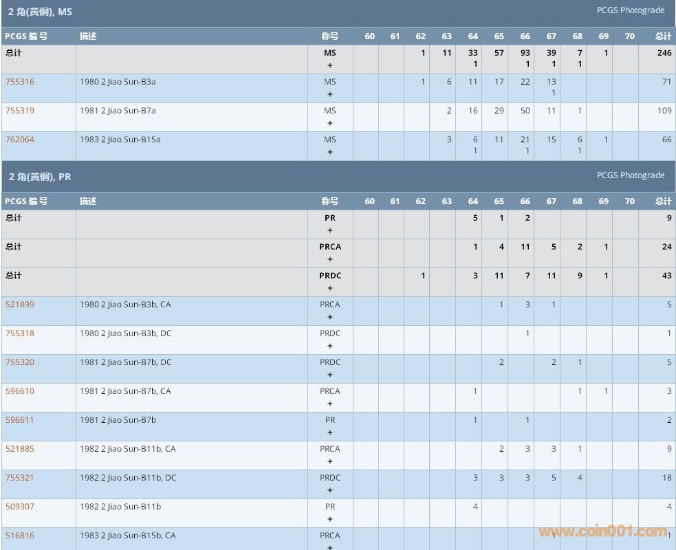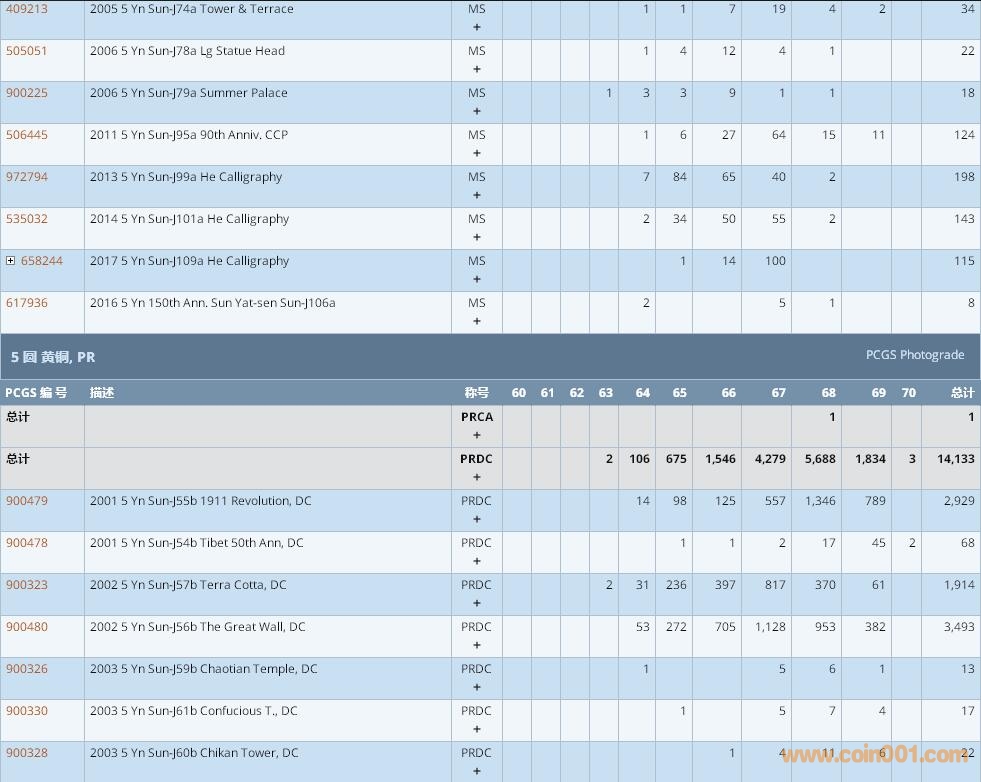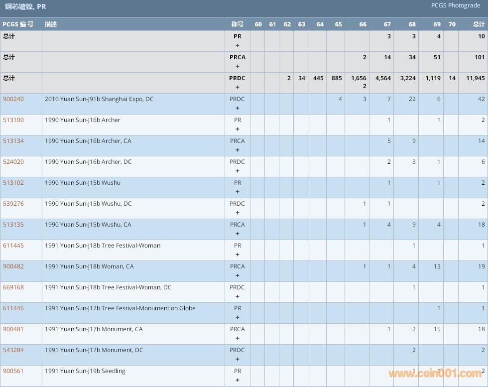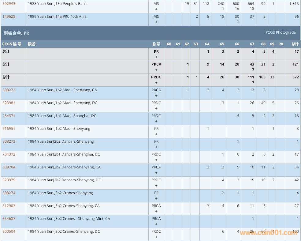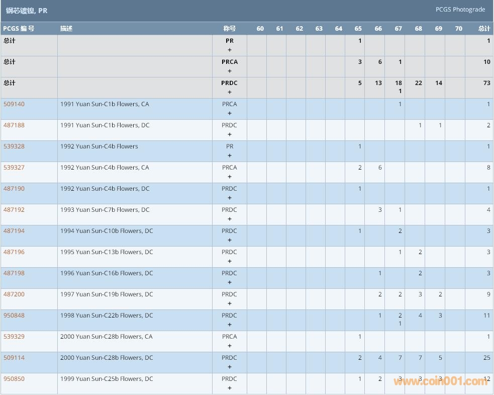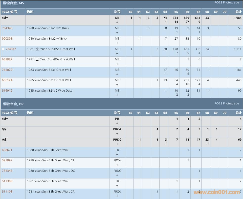PCGS硬幣評(píng)級(jí)數(shù)量報(bào)告 ..