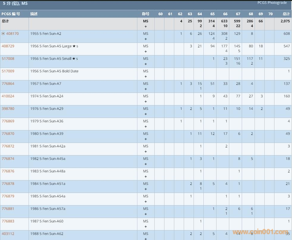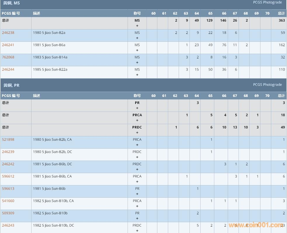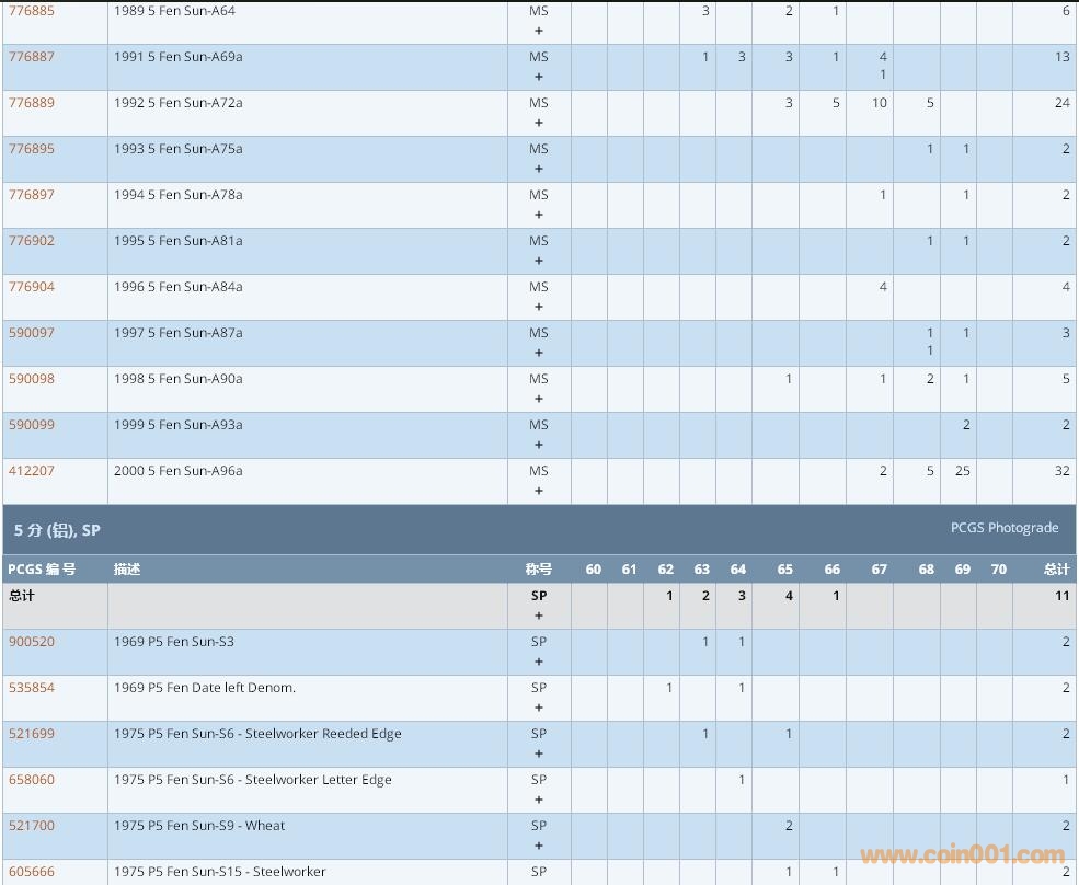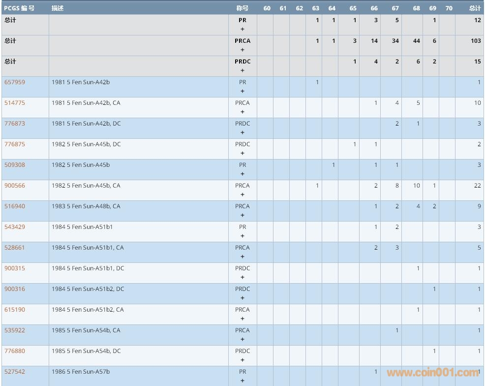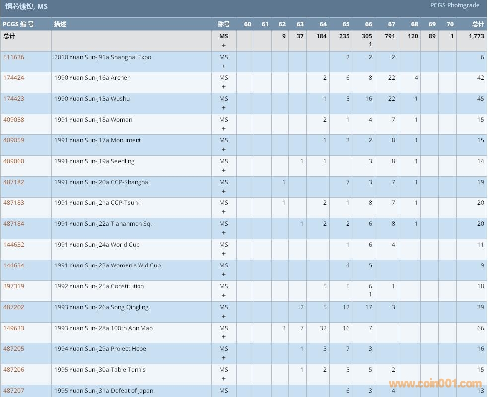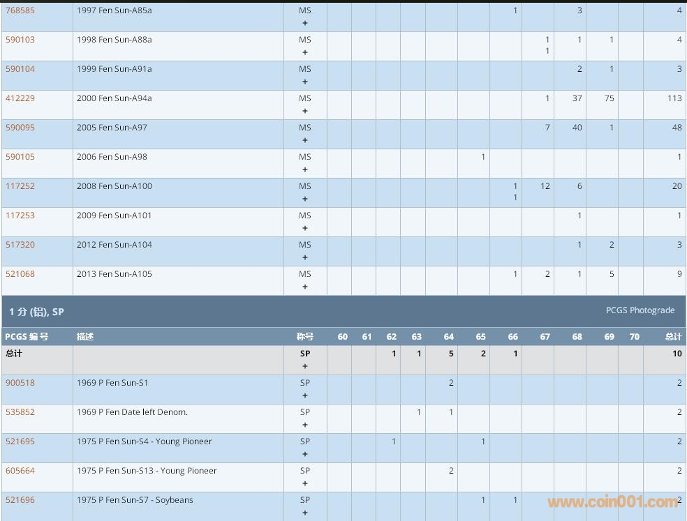 PCGS硬幣評(píng)級(jí)數(shù)量報(bào)告 ..
