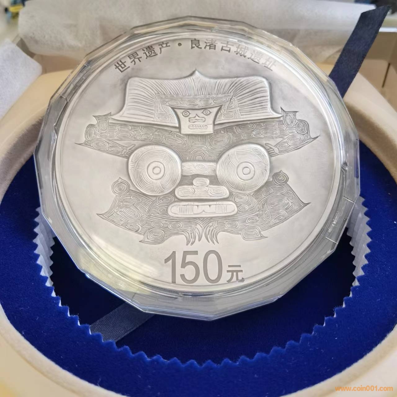 出2枚良渚古城遺址(世界遺產(chǎn))原盒500克圓形銀幣。