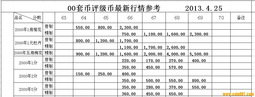 4月25日91-00年普制套幣行情及2000年普制、精制評級幣報價參考