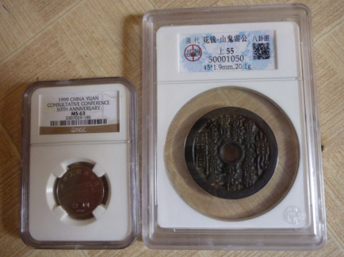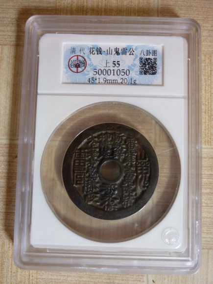 絕美黑銹包漿初?!┰u(píng)級(jí)上55分山鬼 好貨不用多說(shuō)話 開(kāi)頭四張圖片都是送評(píng)前的裸*體照 絕美黑包漿 字體深俊清晰 字字無(wú)粘連 字口好 玩精品花錢(qián)古錢(qián)最主要的就是看圖案字體 整體無(wú)磕碰變形啞巴音好平整 收藏價(jià)格2000三包安全到手 規(guī)格數(shù)據(jù)請(qǐng)看評(píng)級(jí)盒子上注明的 不要用普通爛品相的山鬼價(jià)格做比較 一分錢(qián)一分貨 我不賣(mài)次品 要收藏好品相花錢(qián)的 不妨留意
