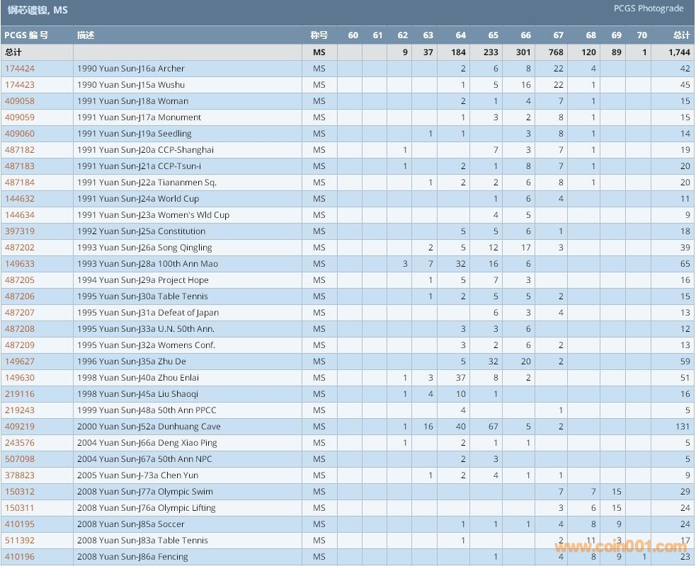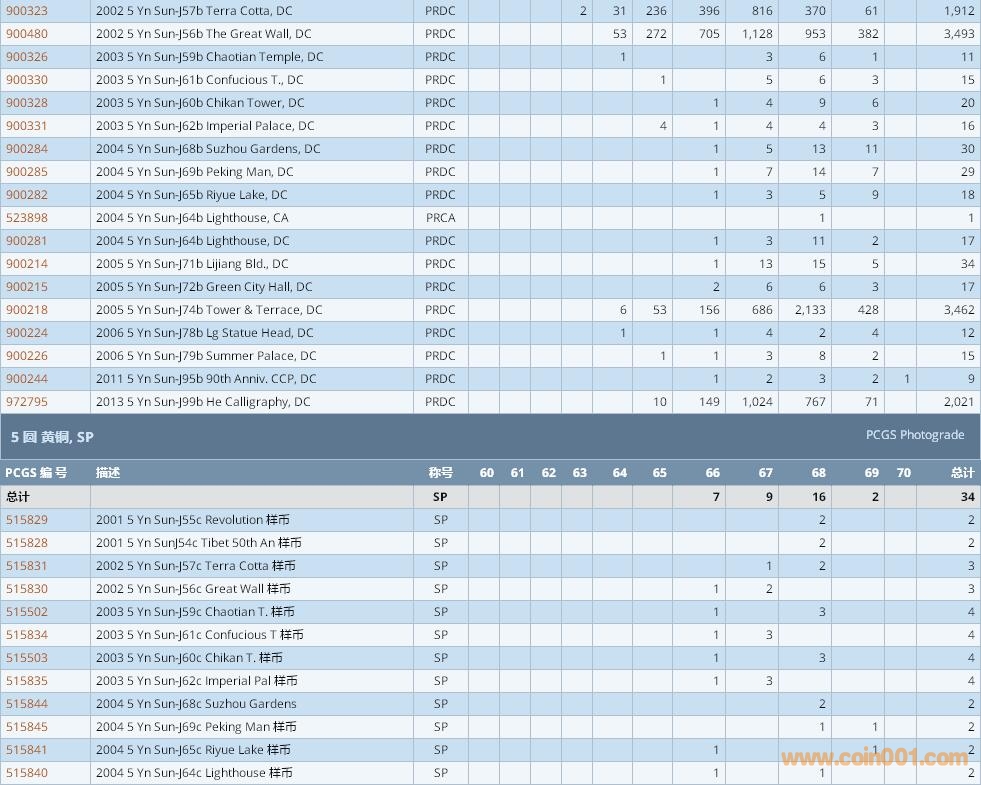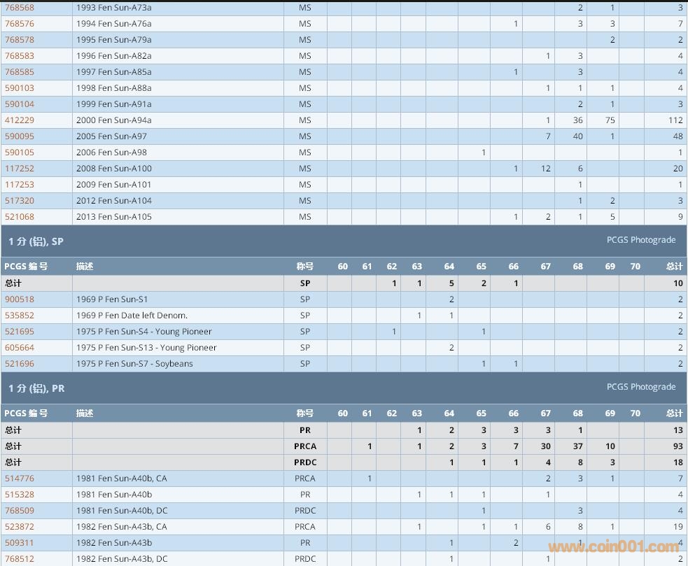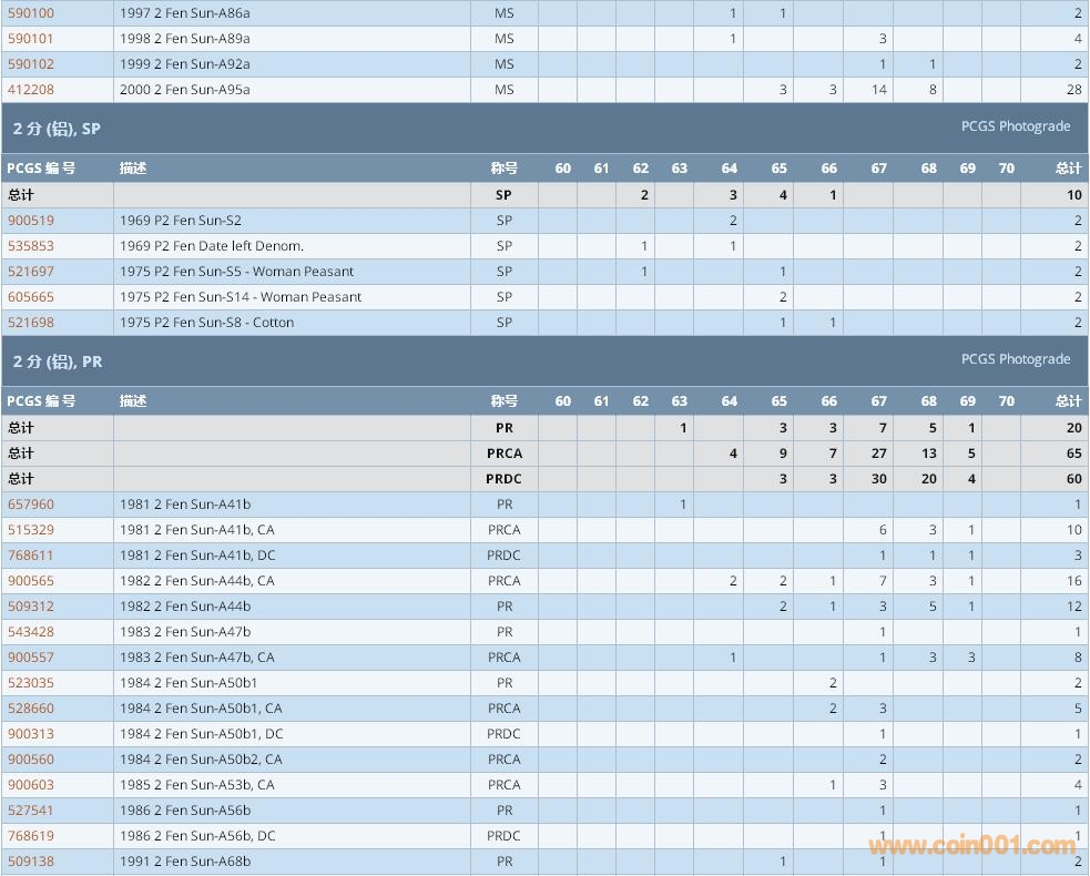 PCGS硬幣評級數(shù)量報(bào)告 ..