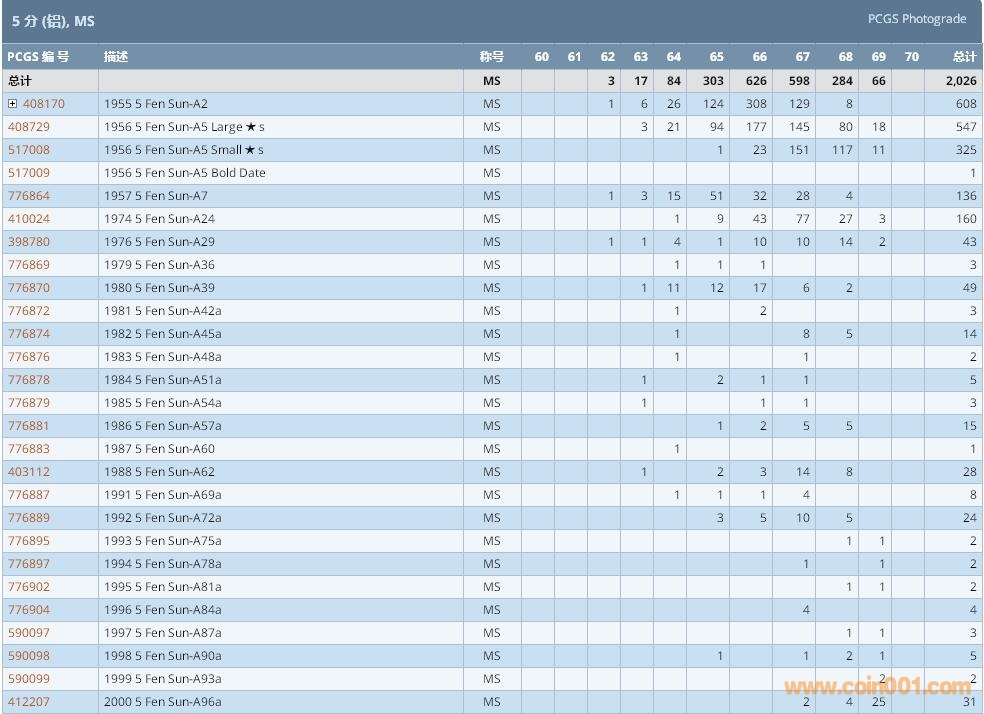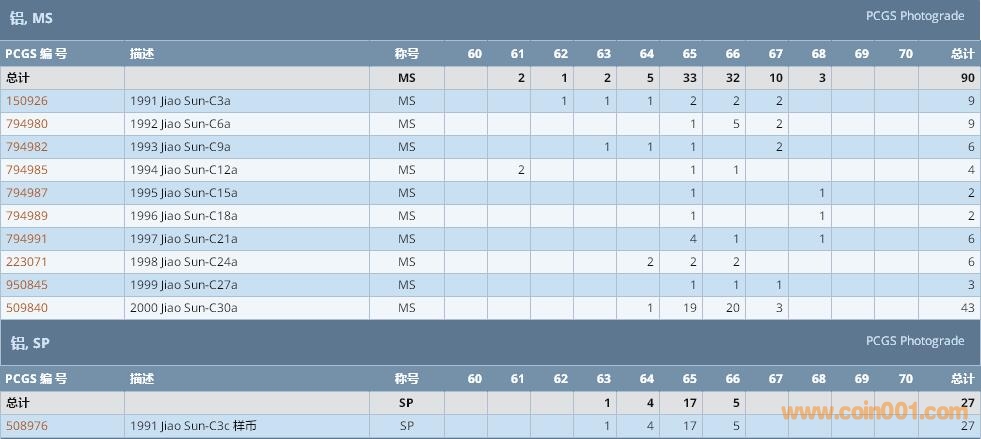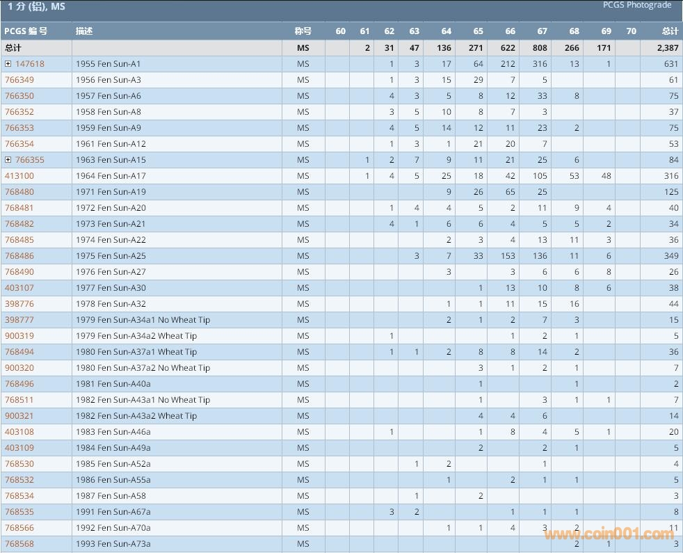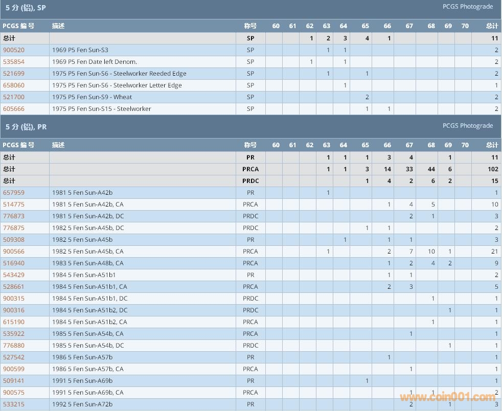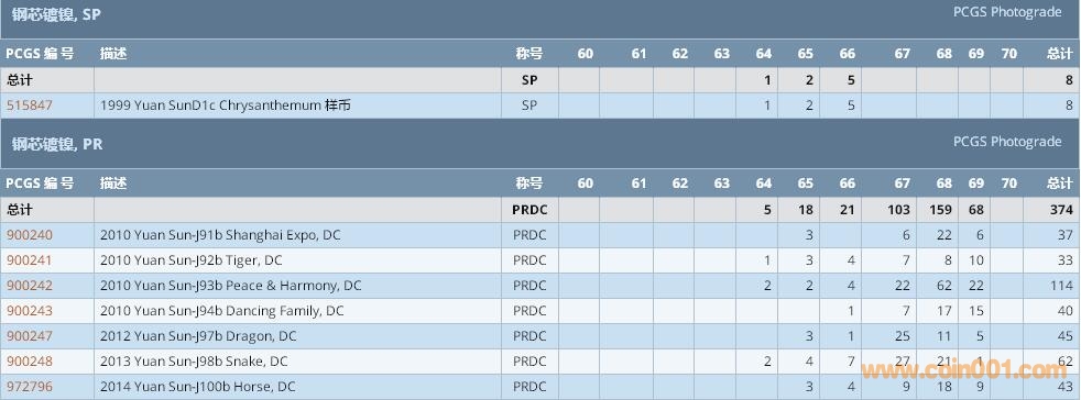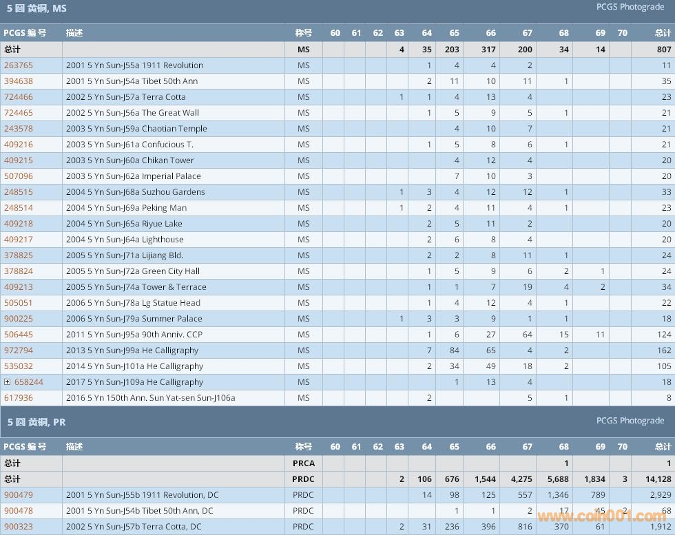PCGS硬幣評級數(shù)量報(bào)告 ..