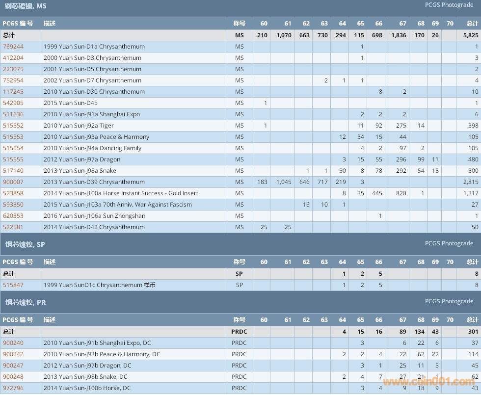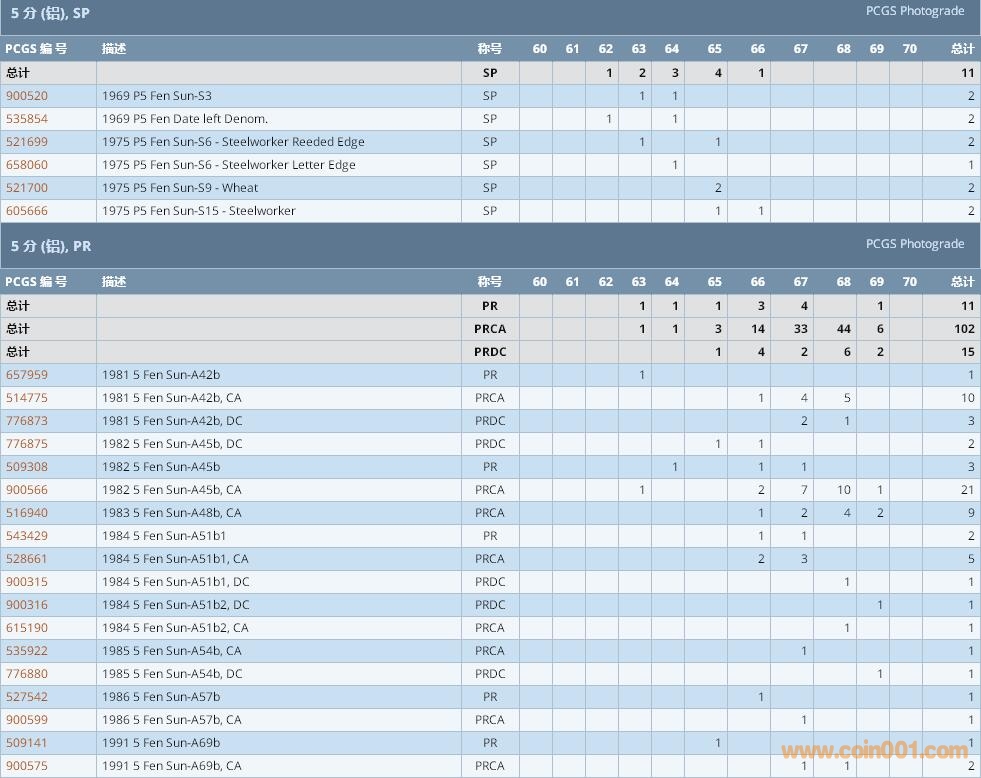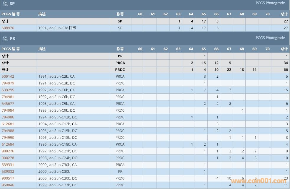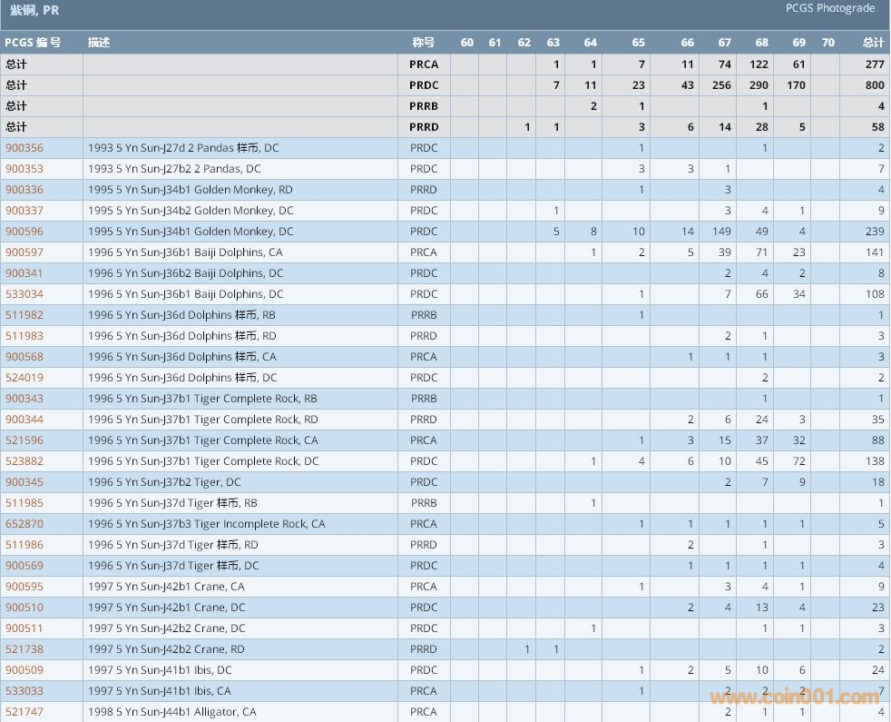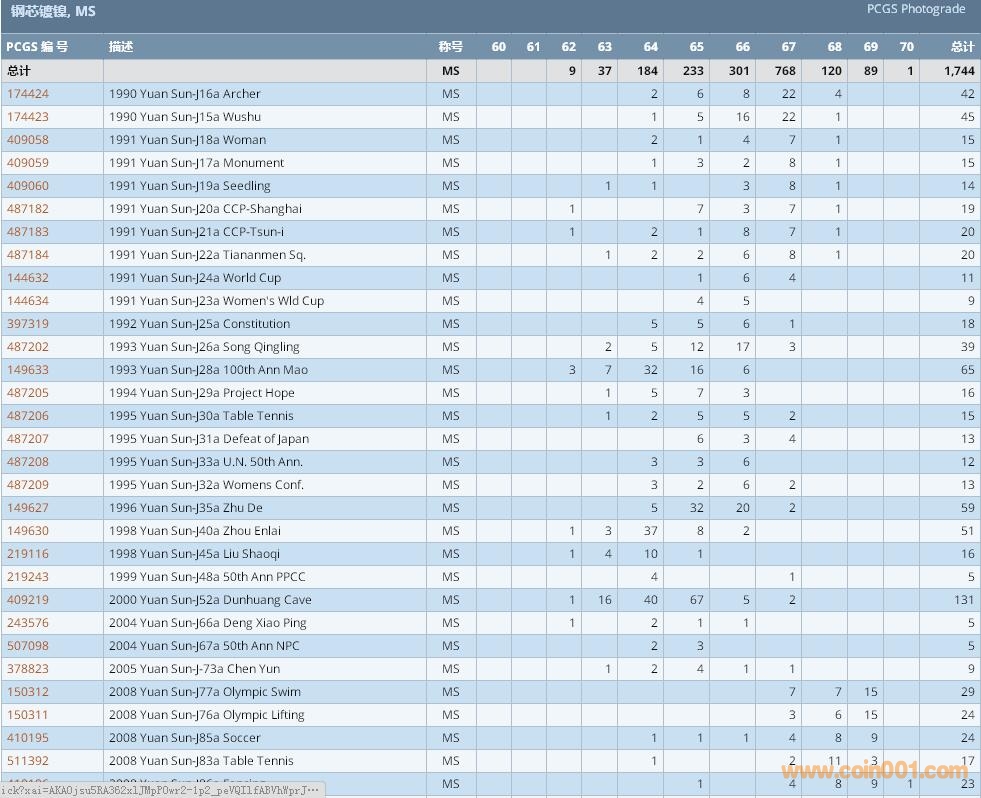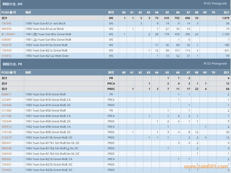 PCGS硬幣評級數(shù)量報告 ..