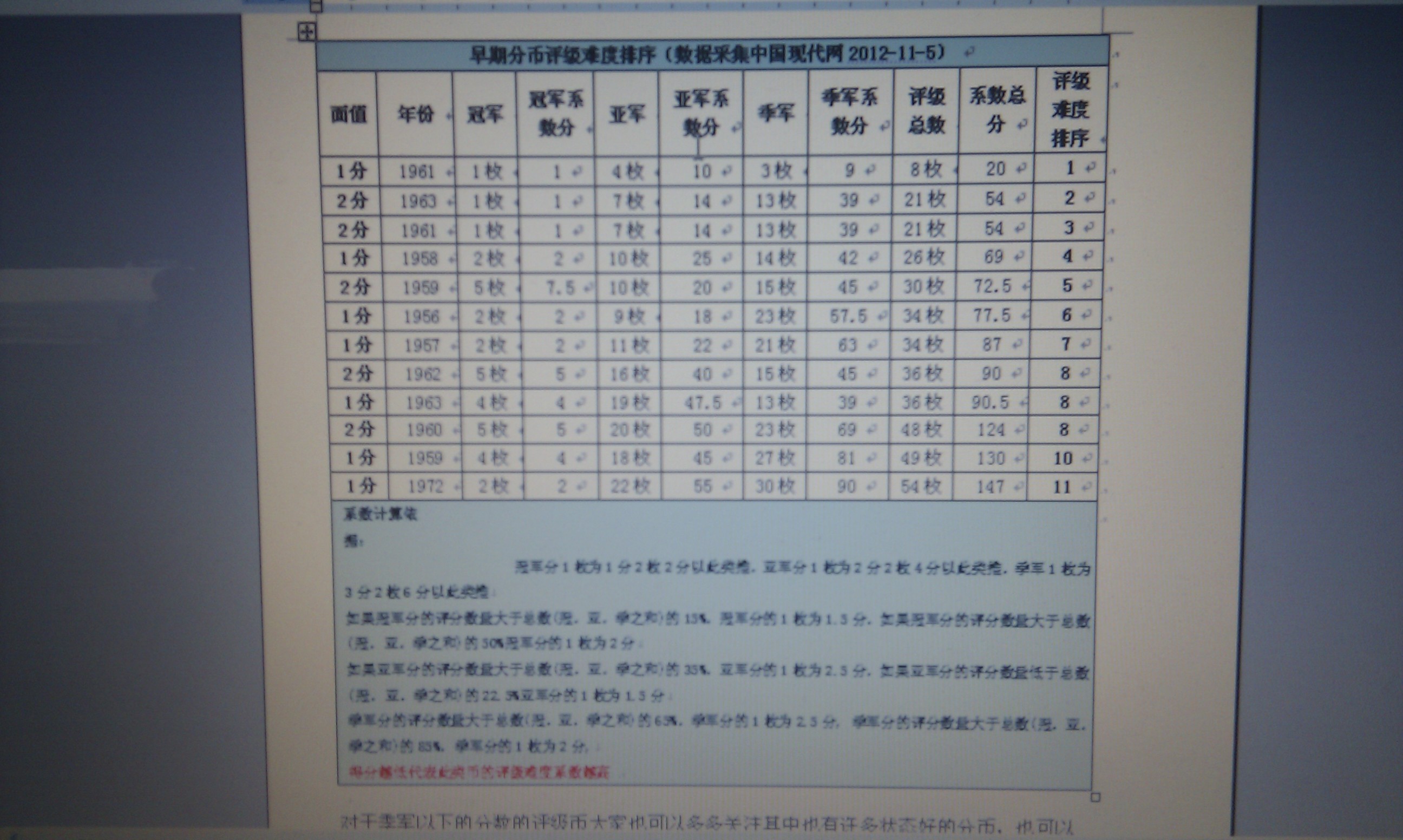 早期分幣評級難度排序(數(shù)據(jù)采集中國現(xiàn)代網2012-11-5)