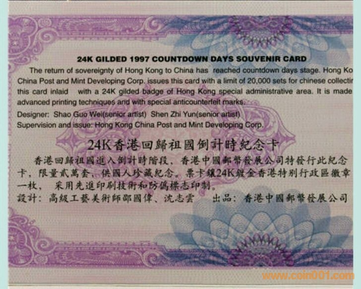 香港回歸倒計(jì)時(shí)紀(jì)念封