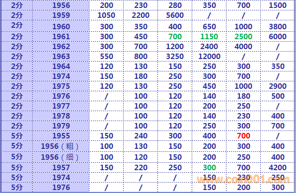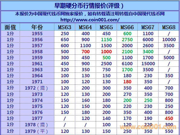 2016,1,1早期硬分幣報(bào)價(jià) ..