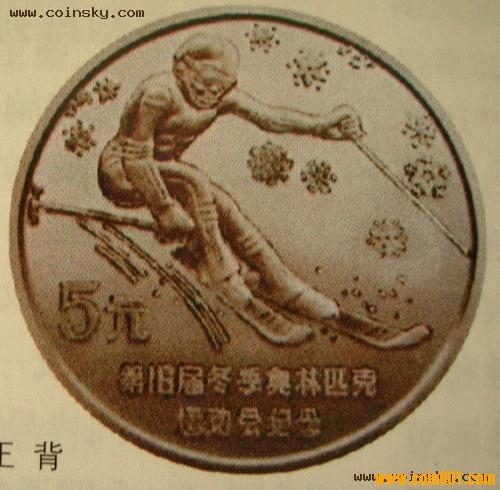 由于造幣技術(shù)的發(fā)展及審查制度的不斷完善,現(xiàn)代金屬鑄幣和紙幣中的錯(cuò)版幣較前要少得多,但偶爾也有。圖4所示為“第15屆冬季奧林匹克運(yùn)動(dòng)會(huì)紀(jì)念”錯(cuò)版幣。1988年我 國(guó)發(fā)行“第15屆冬季奧林匹克運(yùn)動(dòng)會(huì)紀(jì)念”銀幣1套1枚,由于設(shè)計(jì)時(shí)的疏漏,將“15屆”誤寫為“16屆”。該錯(cuò)誤已得到官方的承認(rèn)并在中國(guó)人民銀行貨幣發(fā)行司編寫的《中華人民共和國(guó)貨幣圖錄》中有如下說明:“因疏漏,背面文字出現(xiàn)錯(cuò)誤,‘第16屆’應(yīng)為‘第15屆’。”這一錯(cuò)版紀(jì)念幣最初發(fā)行價(jià)不足百元,現(xiàn)已漲至數(shù)千元一枚。