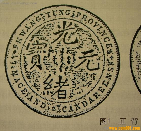 圖1所示為“廣東七二反版”銀幣。清光緒十五年(1889年)廣東省曾鑄造光緒元寶銀幣一種,設(shè)計(jì)者將英文置于錢幣正面“光緒元寶”4字之外圈,受到一些清政府官員的非議,認(rèn)為“將洋文列于中國(guó)年號(hào)之內(nèi),體制尚有未合,應(yīng)請(qǐng)飭令該督(兩廣總督)將洋文改鏨蟠龍之外,以廣東省造庫(kù)平七錢二分漢文改到正面,其半元以下銀元以次照改,較為妥協(xié)”。清政府采納了上述意見,將錢幣正面的英文移至背面,這種被稱為“廣東七二反版”的銀幣遂即停鑄。此錯(cuò)版銀幣沒有正式發(fā)行,存世很少,百年來一直是錢幣收藏者關(guān)注的焦點(diǎn)。
