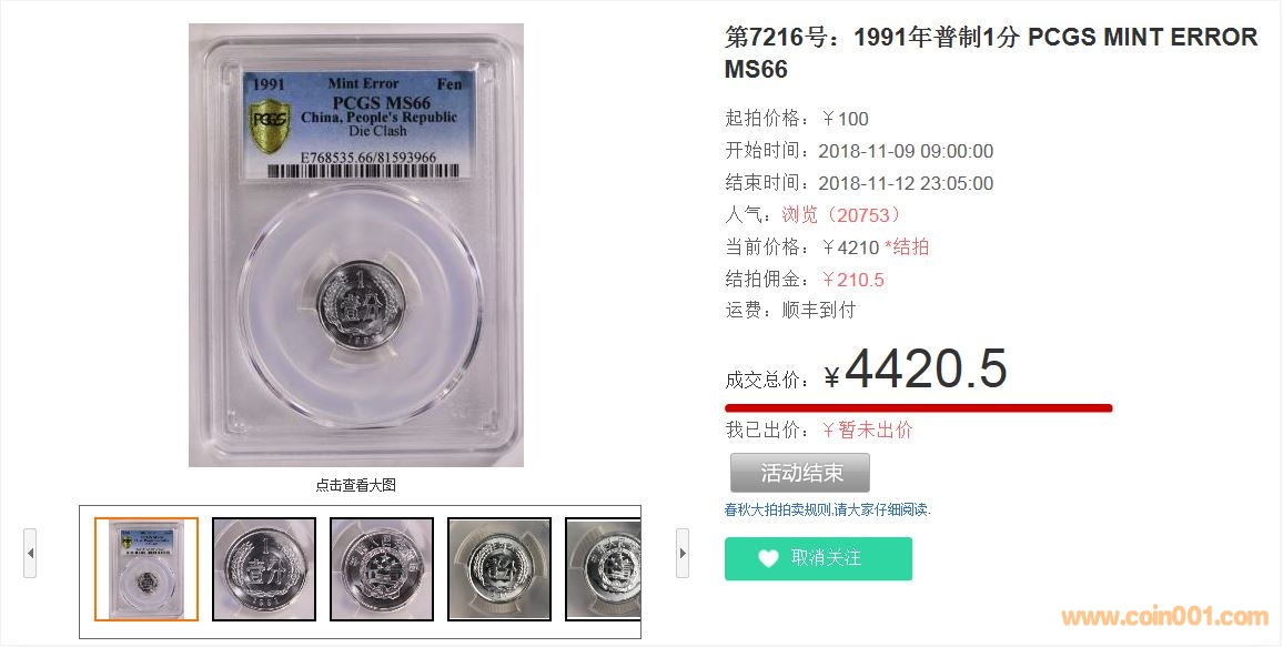 第7216號PCGS評級錯幣: