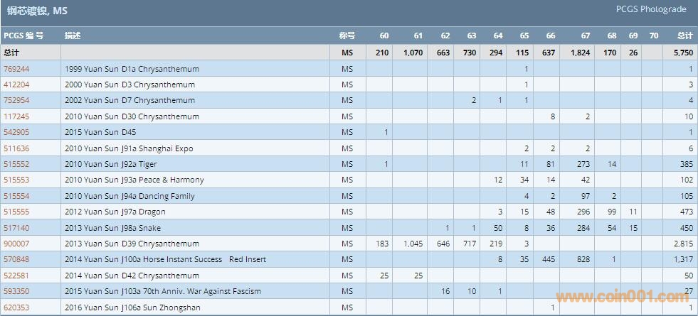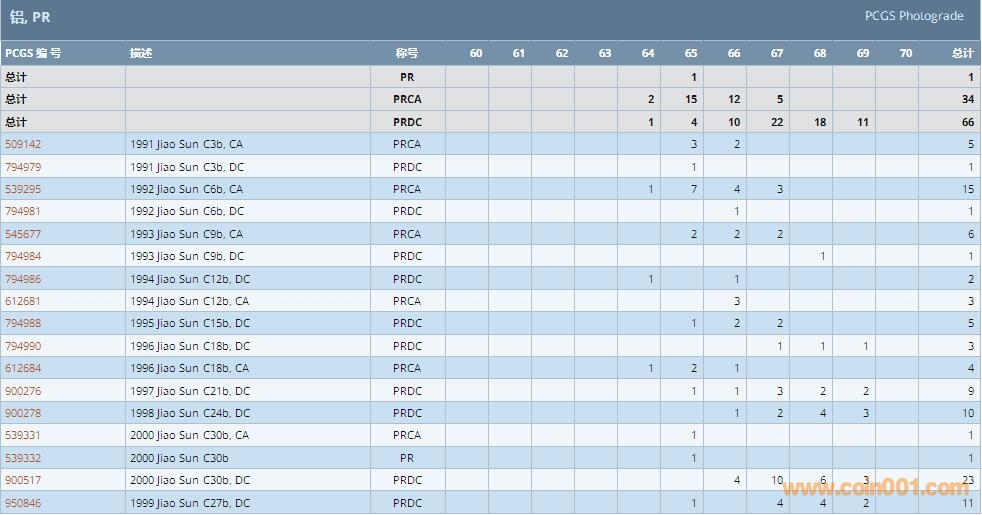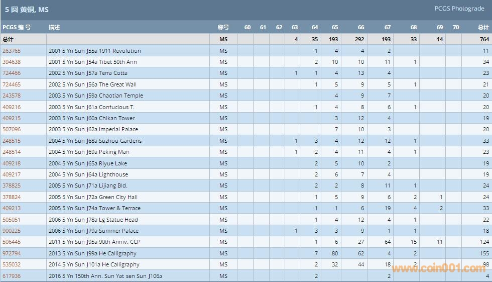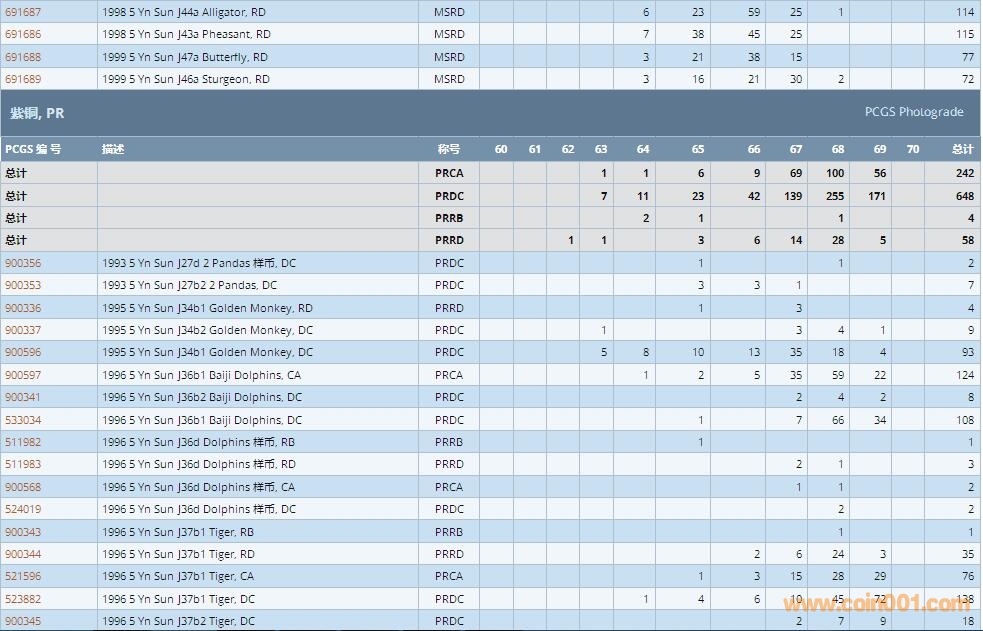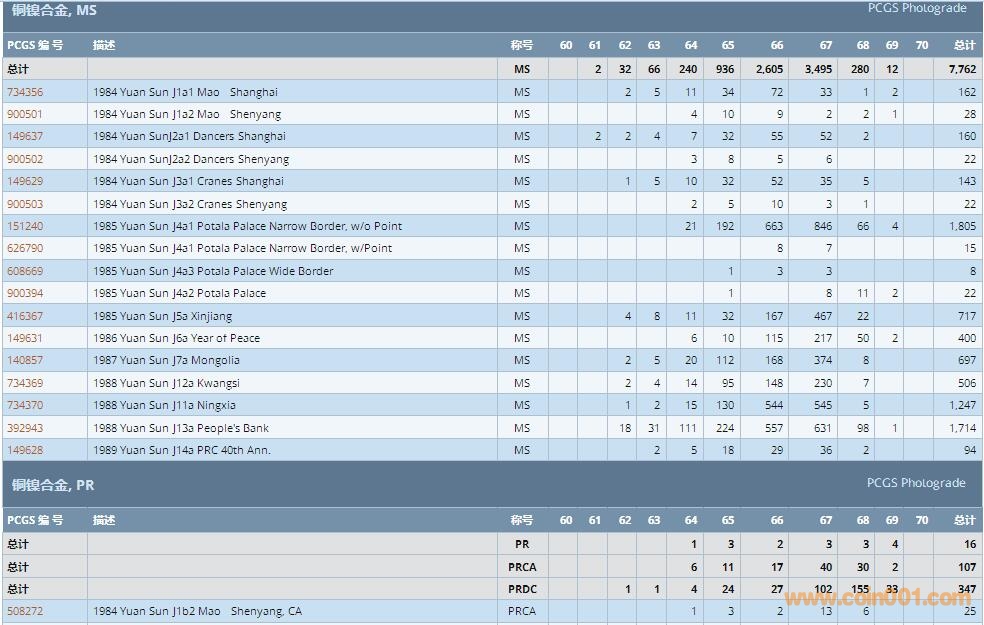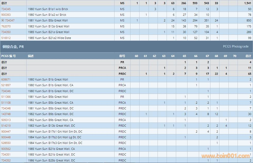 PCGS硬幣評級數(shù)量報(bào)告 ..