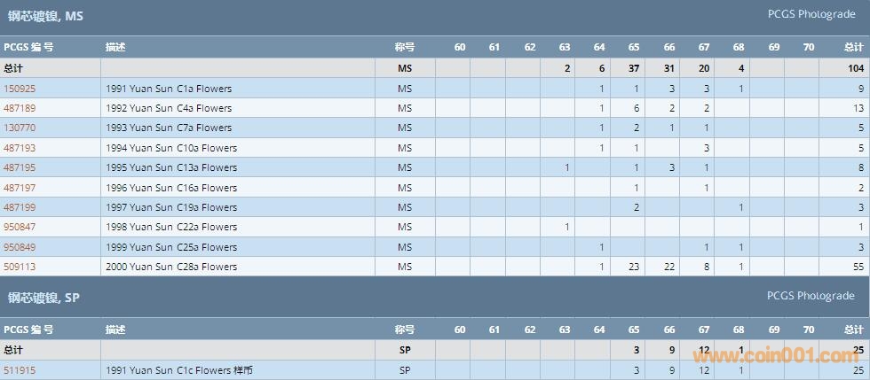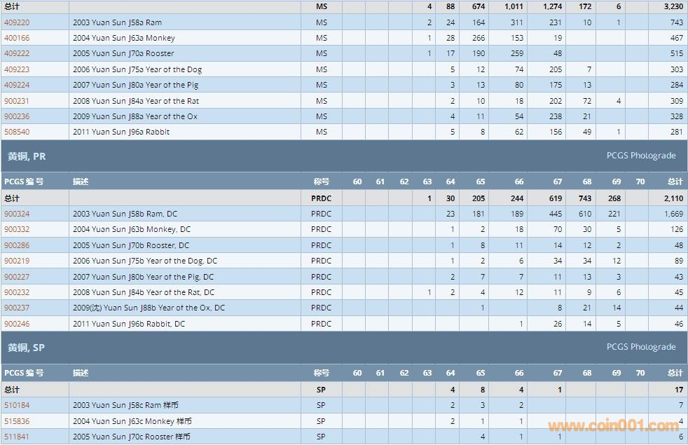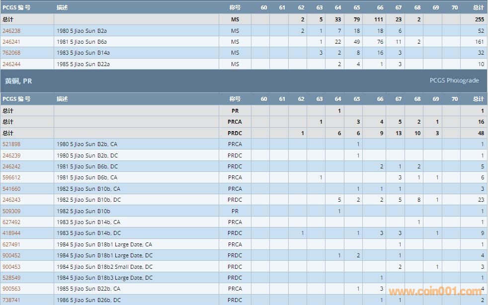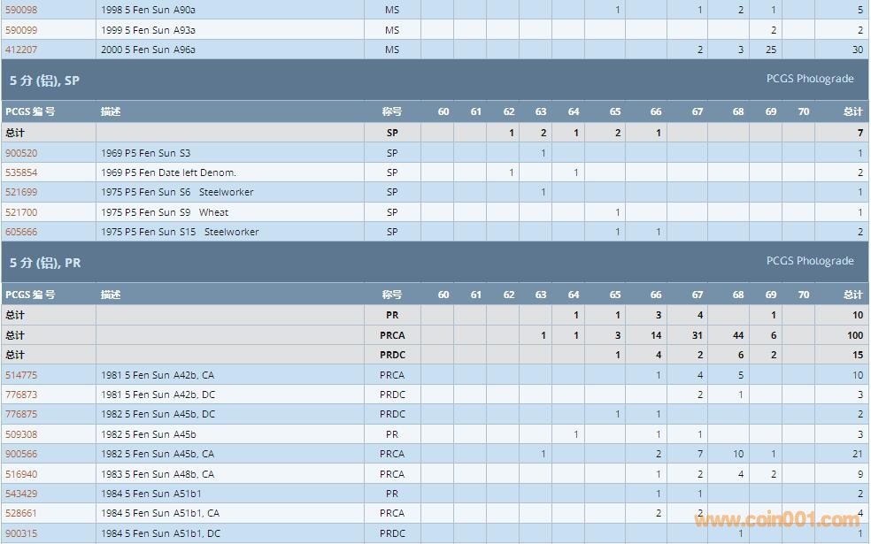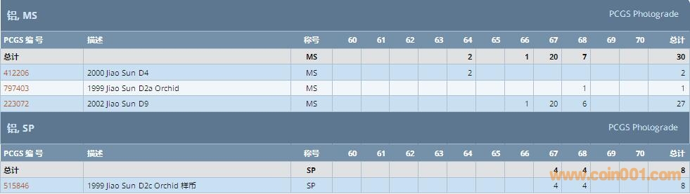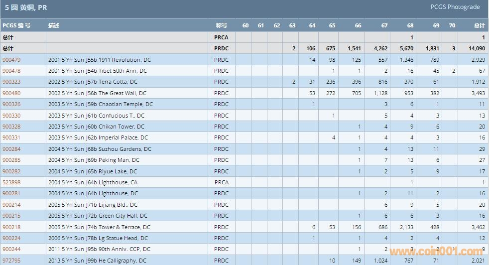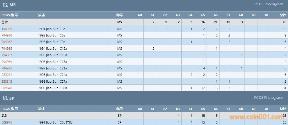 PCGS硬幣評級數(shù)量報(bào)告 ..