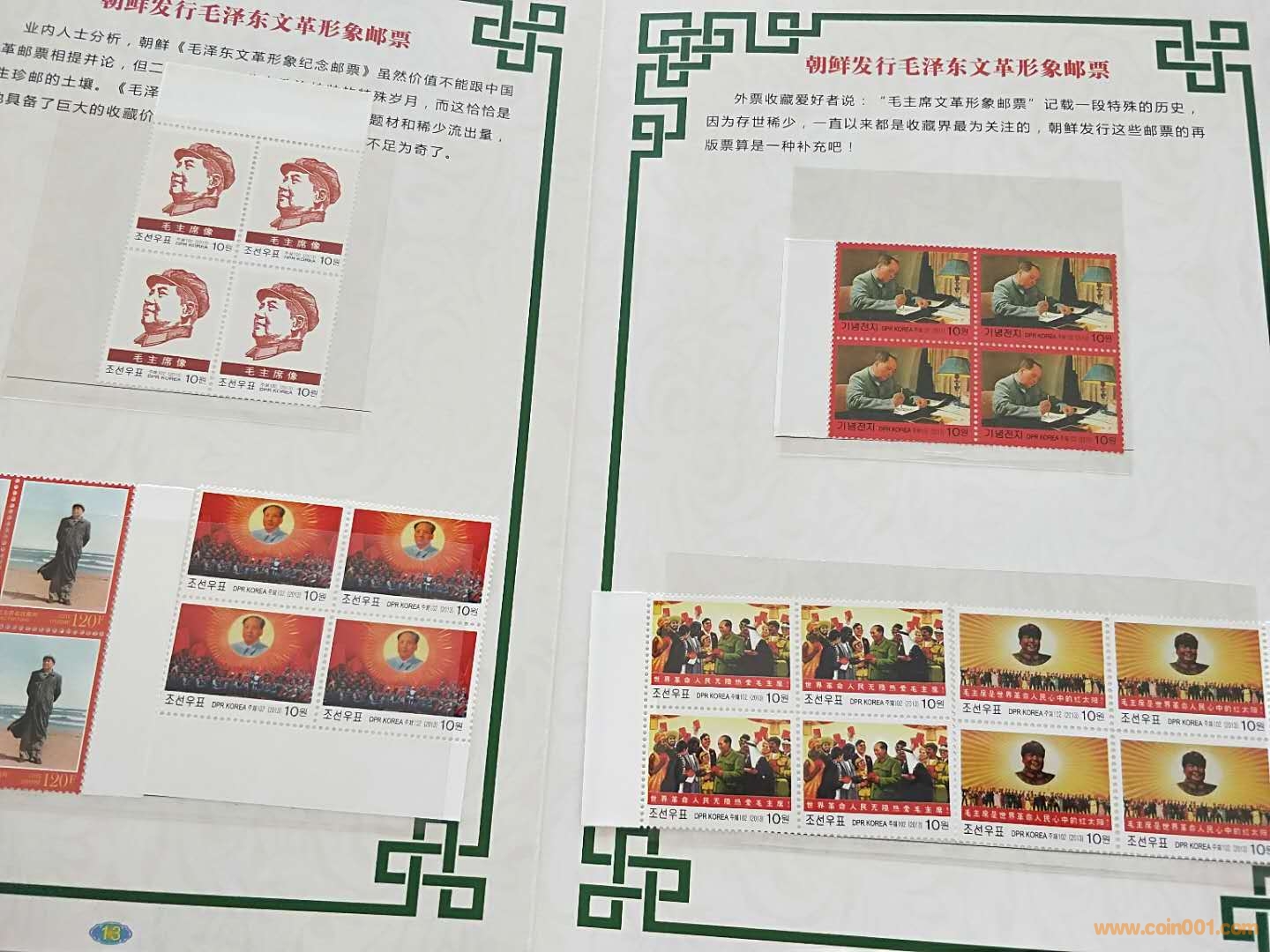 為紀念開國領(lǐng)袖毛澤東誕辰120周年,朝鮮官方發(fā)行了“毛澤東文革形象郵票”大全套,馬里則發(fā)行了毛主席詩詞郵票大全套,兩套郵票都取自中國發(fā)行的文革郵票。我國發(fā)行的19組80枚“文”字頭郵票市價已超20萬元,其中以此兩套郵票最為珍貴。由于我國文革郵票市價太高,很多收藏愛好者都望而卻步,《一代偉人毛澤東》四方連郵票珍藏冊中含有此兩套及科特迪瓦發(fā)行的毛主席郵票四方連共35枚,能讓我們輕松擁有,完全摒棄收集不到文革郵票的遺憾,況且四方連郵票更具收藏價值。尤其是大紅大綠的文革特色和精美絕倫的“毛體”書法藝術(shù),更令人愛不釋手。