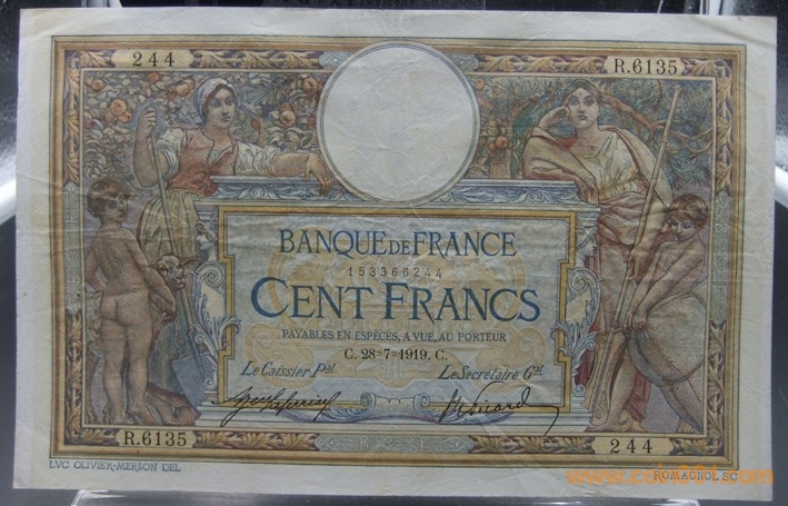法國(guó)1919年100法朗紙幣