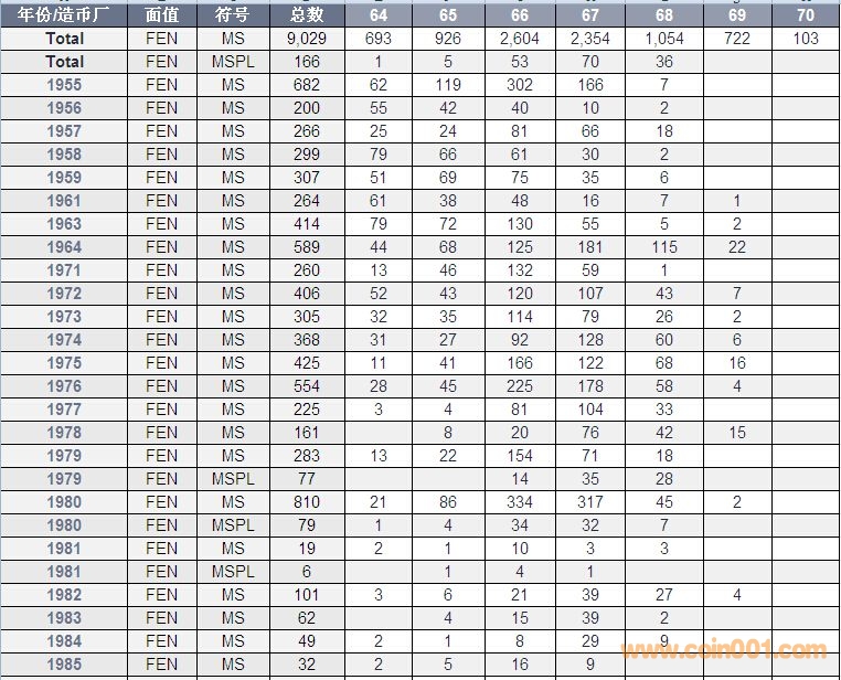NGC硬幣評級數(shù)量報告 ..