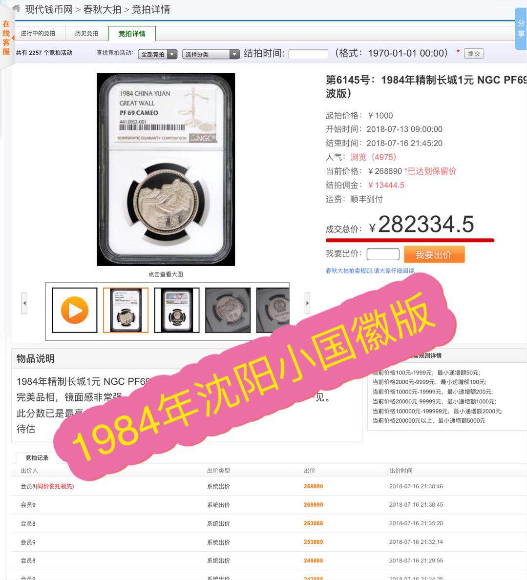 長城幣版別-1984年沈陽 ..
